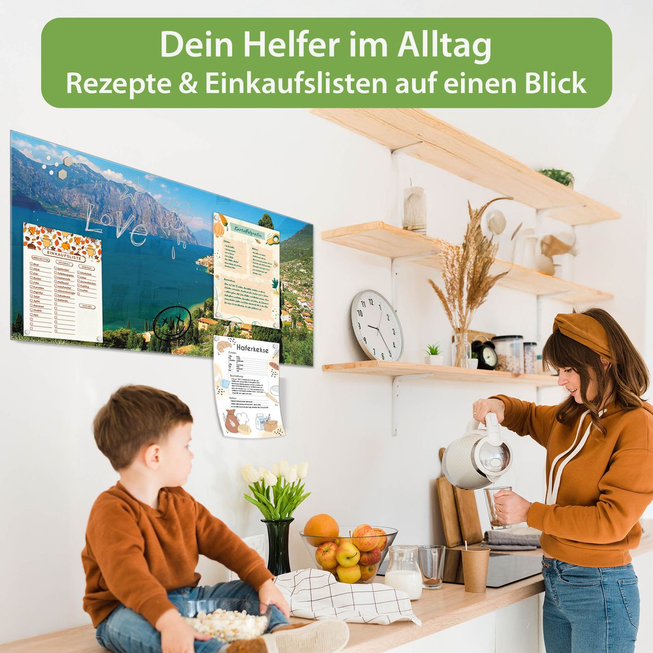 Ein Stück Design, das Ihren Alltag organisiert. Schreiben, heften, inspirieren - alles an einem Ort. Qualität, die man spürt. Montage leicht gemacht. Handwerk mit Herz - veredelt in Sachsen. Einzigartiges Design mit Motiv Motiv Gardasee Beschreibbare Glasoberfläche, leicht zu reinigen Starke Magnetkraft durch Stahlrückwand Inklusive 4 Neodym-Magneten Flexible Montageoptionen Handveredelt in Sachsen - Qualität, die bleibt