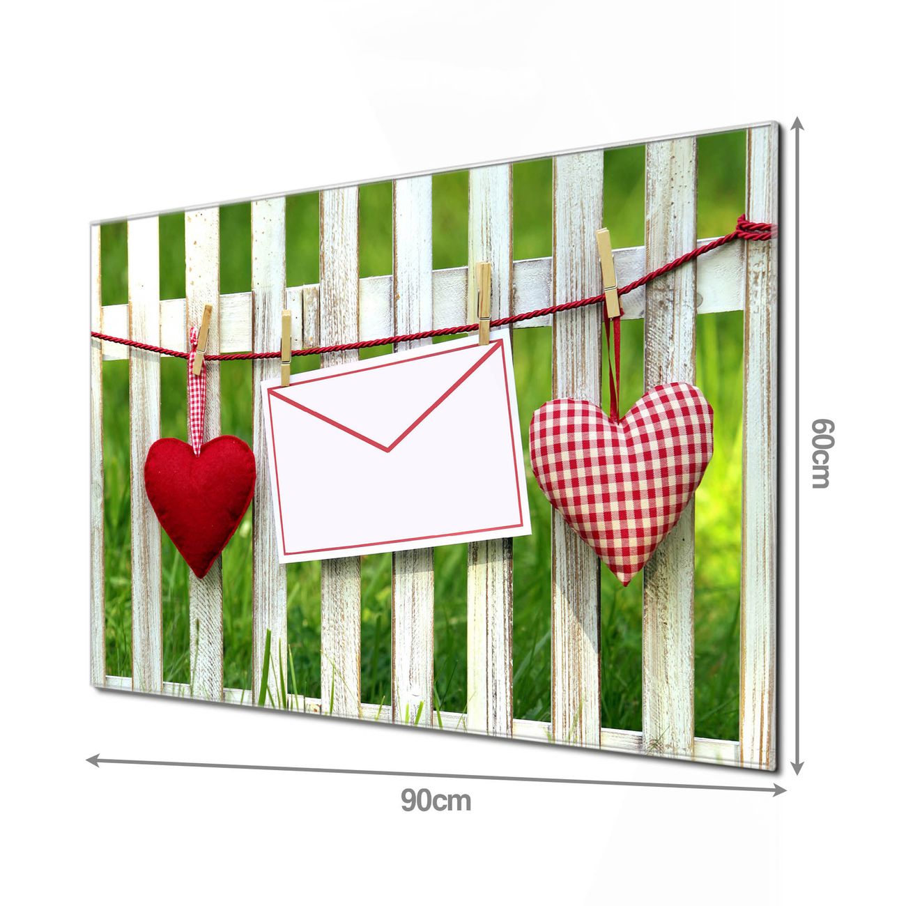Material: 4mm Sicherheitsglas mit Metallrückwand Eigenschaften: beschreibbar, magnetisch, kratzfest Maße: 90x60x0,6cm, 8,10kg schwer Motiv Nummer 10375 Gartenzaun Zubehör: inklusive 4 Neodym-Magnete