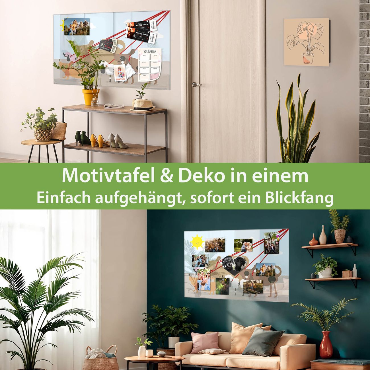 Die banjado Glas Magnettafel mit dem Motiv Motiv Gassi Gehen verbindet Funktionalität mit Stil. Sie ersetzt das Zettelchaos durch klare Strukturen und bringt dabei eine warme, natürliche Atmosphäre in Ihr Zuhause. Ob im Büro, in der Küche oder im Eingangsbereich - dieses Design-Board zieht Blicke an und sorgt für Ordnung mit Charakter.