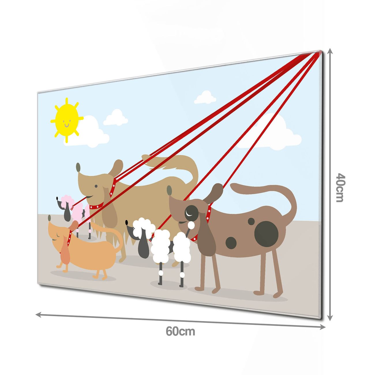 Material: 4mm Sicherheitsglas mit Metallrückwand Eigenschaften: beschreibbar, magnetisch, kratzfest Maße: 60x40x0,6cm, 3,6kg schwer Motiv Nummer 11883 Gassi Gehen Zubehör: inklusive 4 Neodym-Magnete