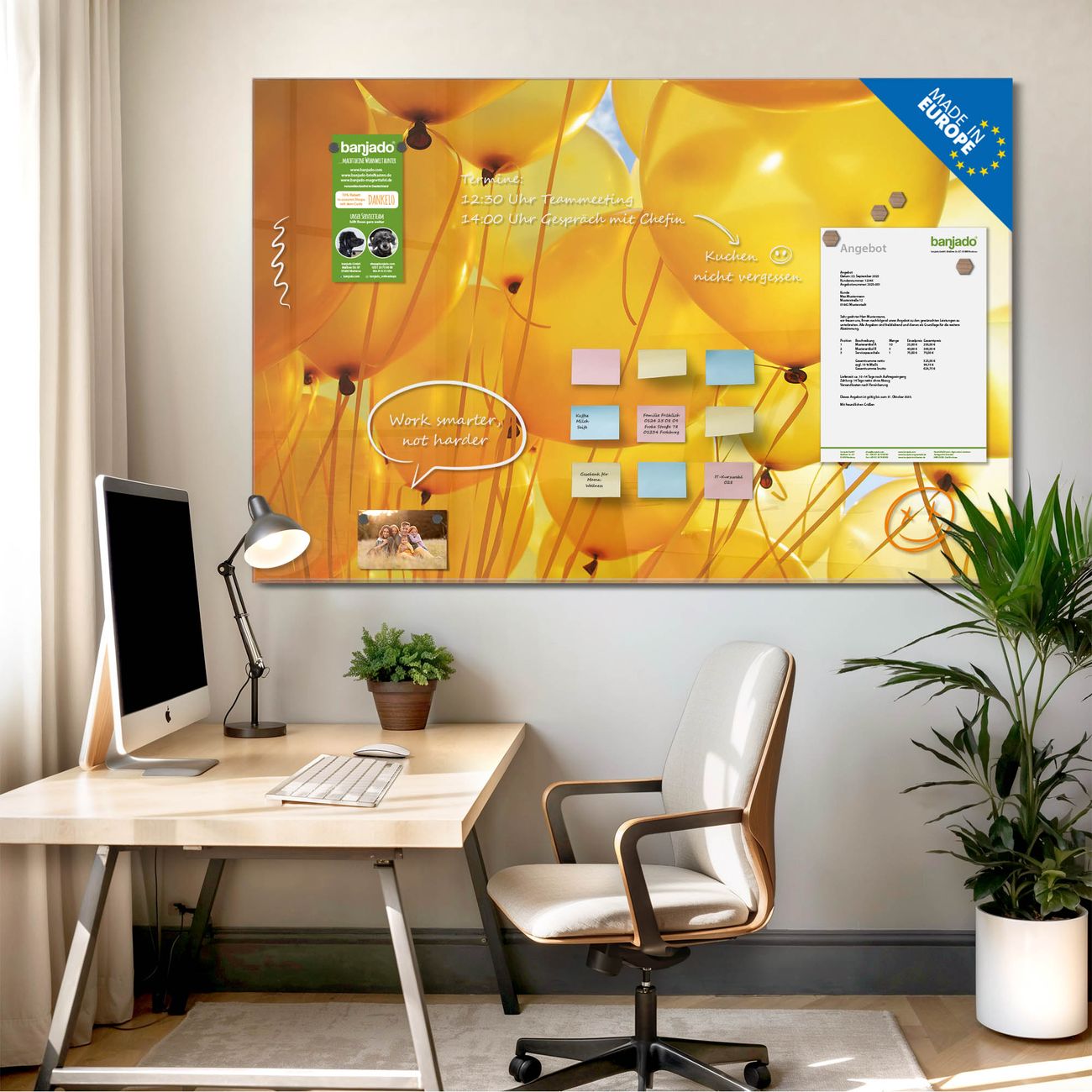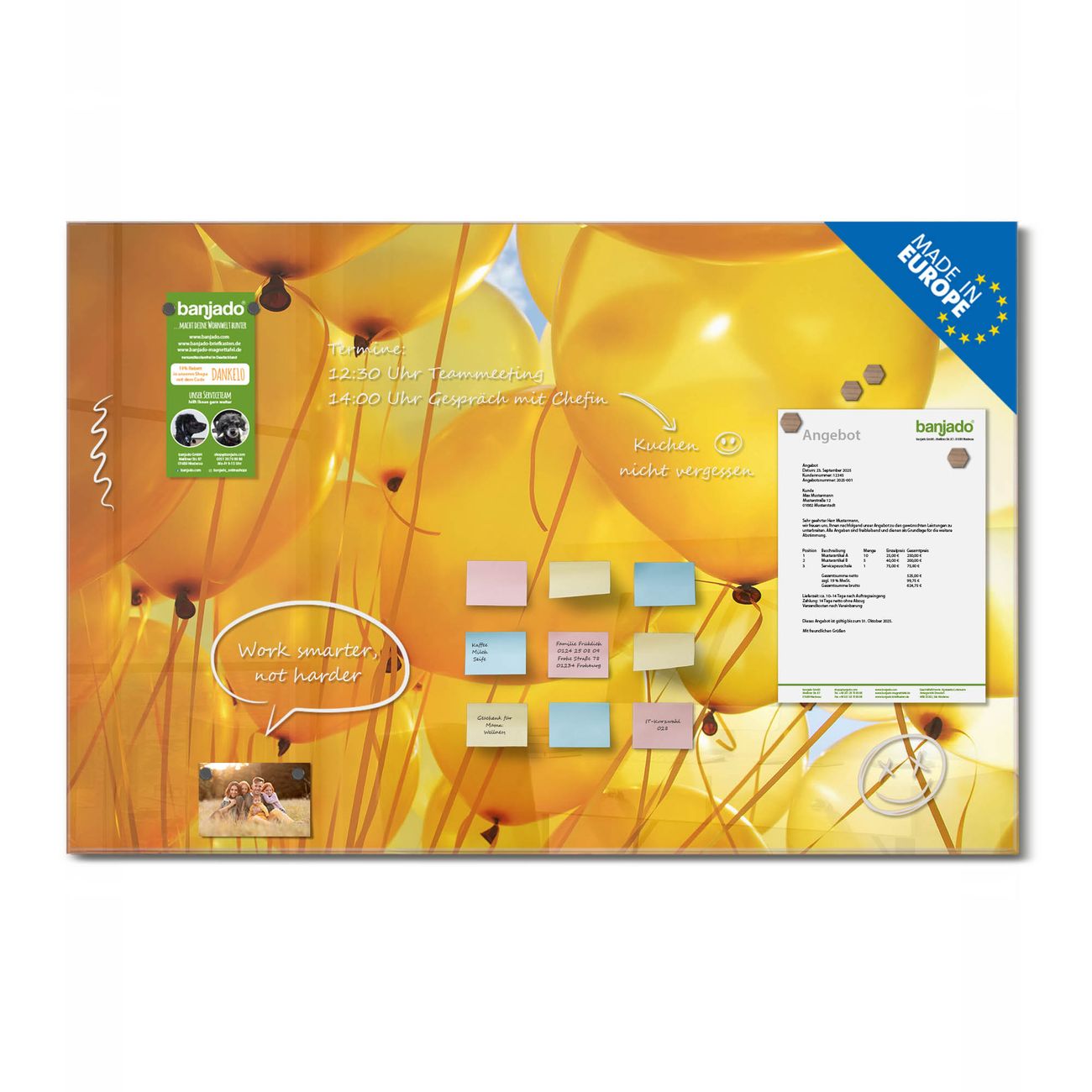 Glas Magnettafel im Querformat Motiv Gelbe Luftballons