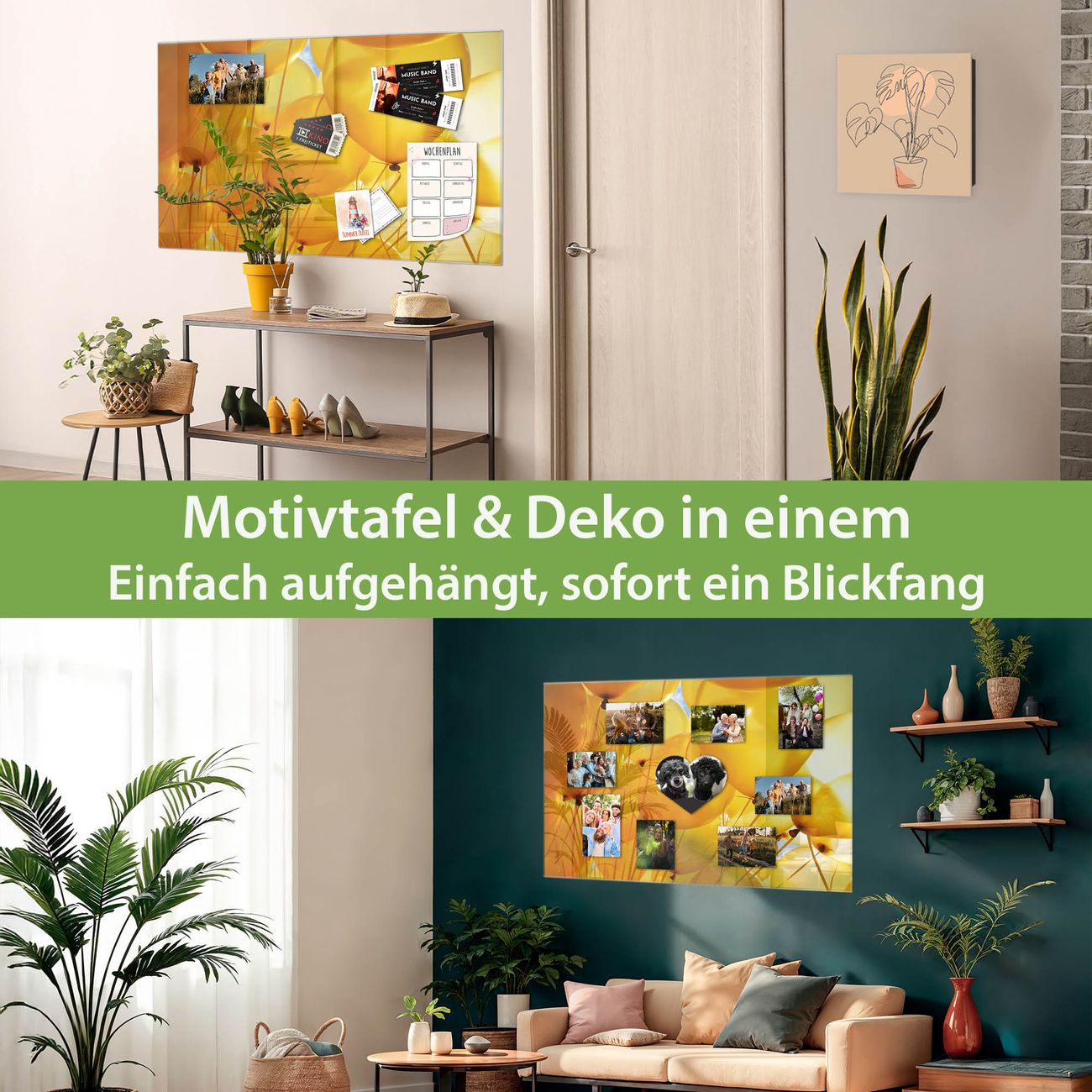 Die banjado Glas Magnettafel mit dem Motiv Motiv Gelbe Luftballons verbindet Funktionalität mit Stil. Sie ersetzt das Zettelchaos durch klare Strukturen und bringt dabei eine warme, natürliche Atmosphäre in Ihr Zuhause. Ob im Büro, in der Küche oder im Eingangsbereich - dieses Design-Board zieht Blicke an und sorgt für Ordnung mit Charakter.