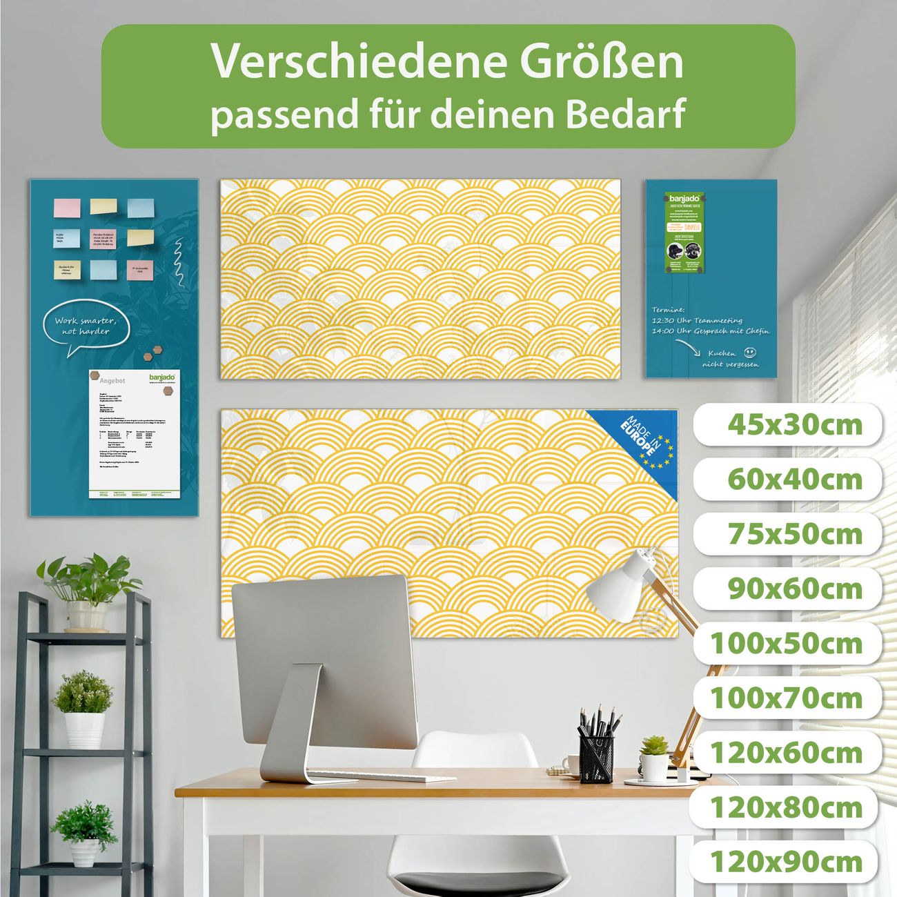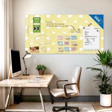 Ein Stück Design, das Ihren Alltag organisiert. Schreiben, heften, inspirieren - alles an einem Ort. Qualität, die man spürt. Montage leicht gemacht. Handwerk mit Herz - veredelt in Sachsen. Einzigartiges Design mit Motiv Motiv Gelbe Wellen Beschreibbare Glasoberfläche, leicht zu reinigen Starke Magnetkraft durch Stahlrückwand Inklusive 4 Neodym-Magneten Flexible Montageoptionen Handveredelt in Sachsen - Qualität, die bleibt