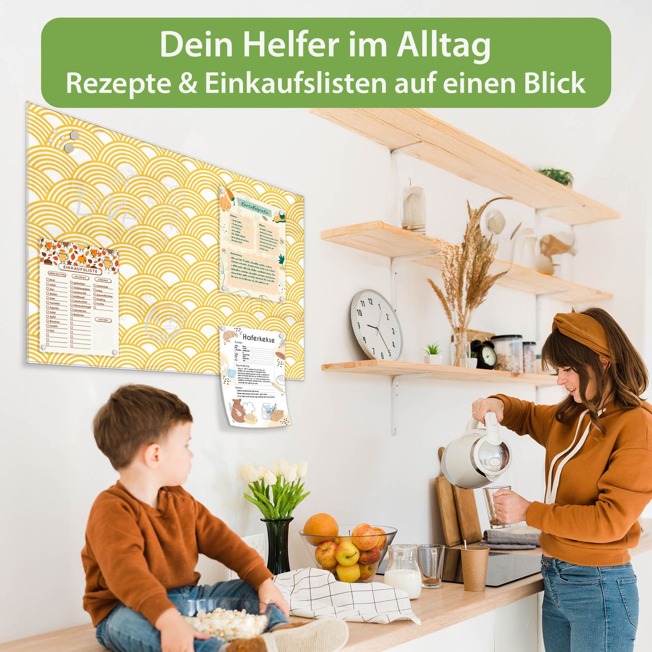 Ein Stück Design, das Ihren Alltag organisiert. Schreiben, heften, inspirieren - alles an einem Ort. Qualität, die man spürt. Montage leicht gemacht. Handwerk mit Herz - veredelt in Sachsen. Einzigartiges Design mit Motiv Motiv Gelbe Wellen Beschreibbare Glasoberfläche, leicht zu reinigen Starke Magnetkraft durch Stahlrückwand Inklusive 4 Neodym-Magneten Flexible Montageoptionen Handveredelt in Sachsen - Qualität, die bleibt