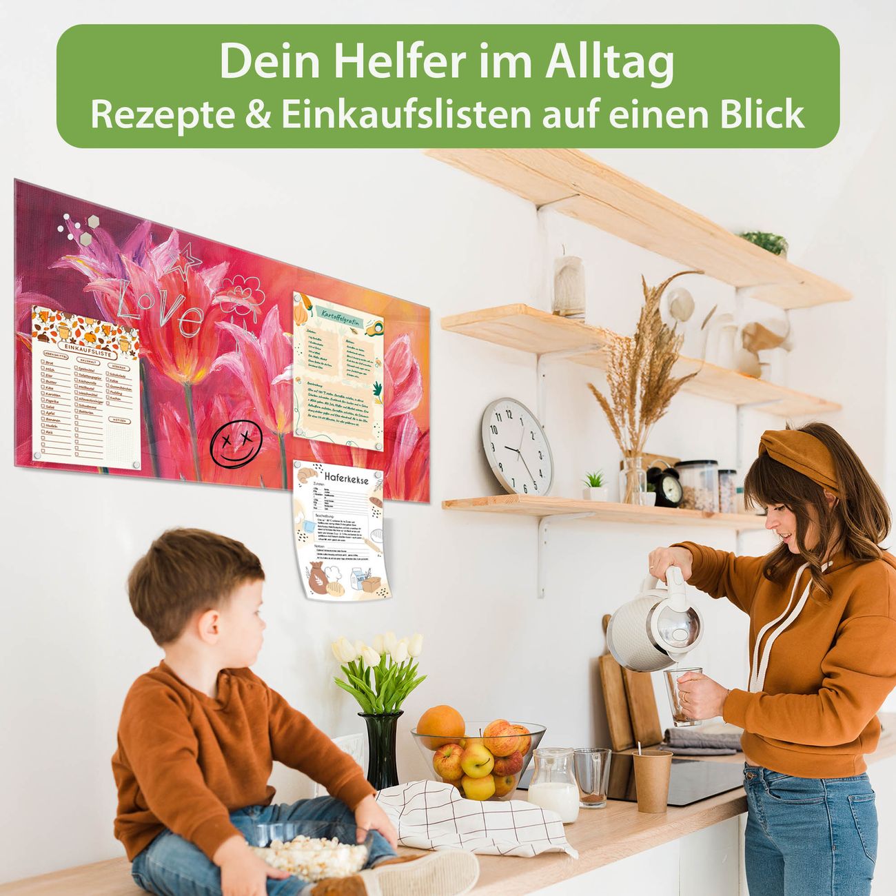 Ein Stück Design, das Ihren Alltag organisiert. Schreiben, heften, inspirieren - alles an einem Ort. Qualität, die man spürt. Montage leicht gemacht. Handwerk mit Herz - veredelt in Sachsen. Einzigartiges Design mit Motiv Motiv Gemalte Tulpen Beschreibbare Glasoberfläche, leicht zu reinigen Starke Magnetkraft durch Stahlrückwand Inklusive 4 Neodym-Magneten Flexible Montageoptionen Handveredelt in Sachsen - Qualität, die bleibt