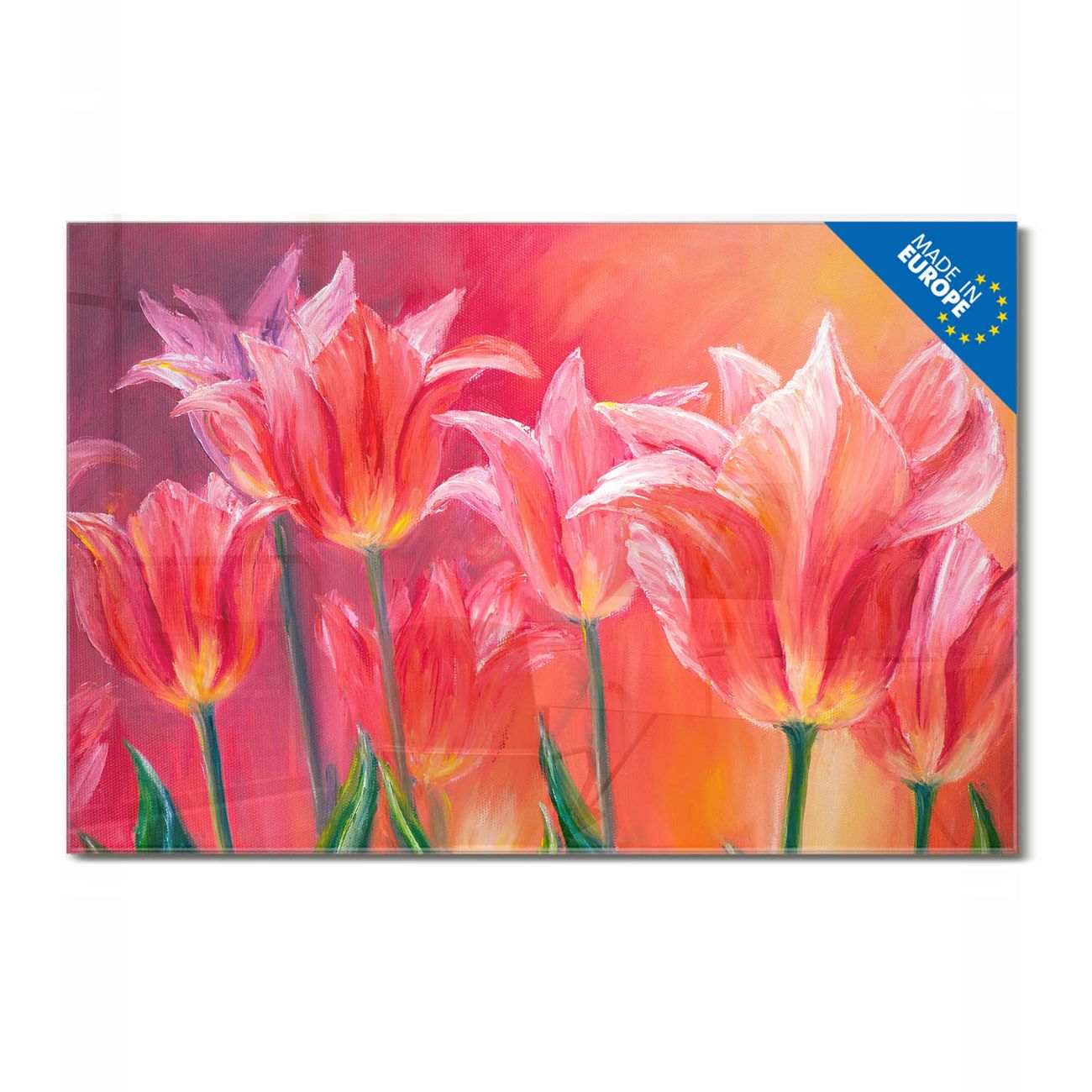 Glas Magnettafel im Querformat Motiv Gemalte Tulpen