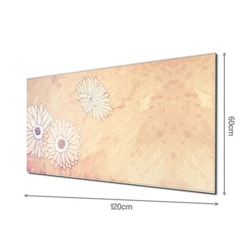 Material: 4mm Sicherheitsglas mit Metallrückwand Eigenschaften: beschreibbar, magnetisch, kratzfest Maße: 120x60x0,6cm, 10,80kg schwer Motiv Nummer 10363 Gerbera Zubehör: inklusive 4 Neodym-Magnete