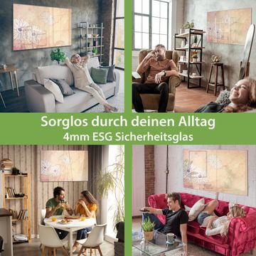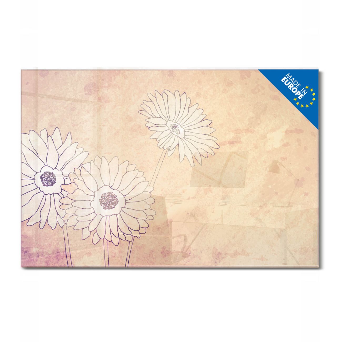 Material: 4mm Sicherheitsglas mit Metallrückwand Eigenschaften: beschreibbar, magnetisch, kratzfest Maße: 120x80x0,6cm, 14,40kg schwer Motiv Nummer 10363 Gerbera Zubehör: inklusive 4 Neodym-Magnete
