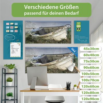 Die banjado Glas Magnettafel mit dem Motiv Motiv Vergessenes Fischerboot verbindet Funktionalität mit Stil. Sie ersetzt das Zettelchaos durch klare Strukturen und bringt dabei eine warme, natürliche Atmosphäre in Ihr Zuhause. Ob im Büro, in der Küche oder im Eingangsbereich - dieses Design-Board zieht Blicke an und sorgt für Ordnung mit Charakter.