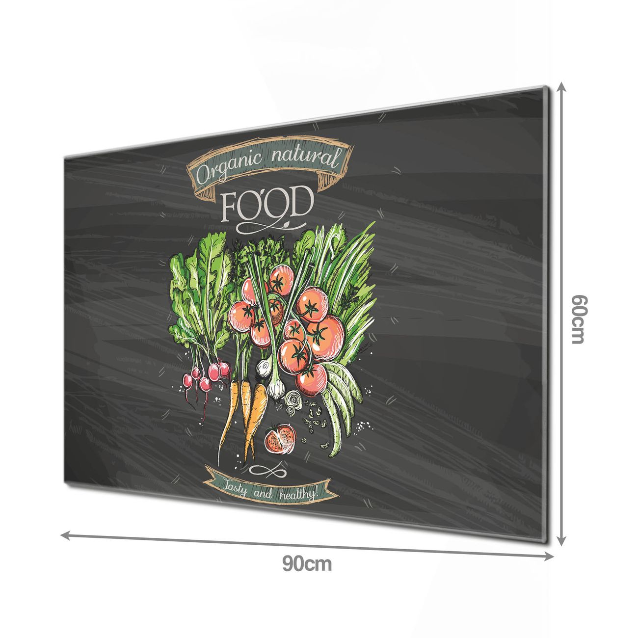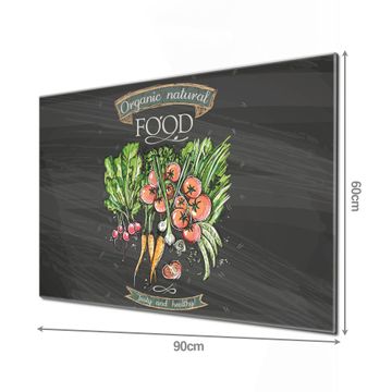 Material: 4mm Sicherheitsglas mit Metallrückwand Eigenschaften: beschreibbar, magnetisch, kratzfest Maße: 90x60x0,6cm, 8,10kg schwer Motiv Nummer 10983 Gesund Und Lecker Zubehör: inklusive 4 Neodym-Magnete