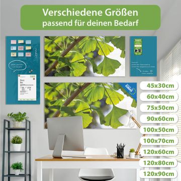 Die banjado Glas Magnettafel mit dem Motiv Motiv Gingko verbindet Funktionalität mit Stil. Sie ersetzt das Zettelchaos durch klare Strukturen und bringt dabei eine warme, natürliche Atmosphäre in Ihr Zuhause. Ob im Büro, in der Küche oder im Eingangsbereich - dieses Design-Board zieht Blicke an und sorgt für Ordnung mit Charakter.