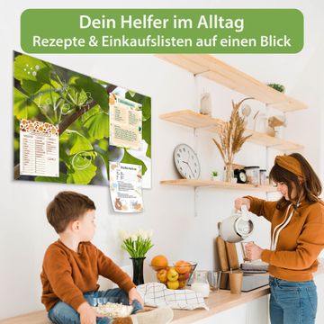 Die banjado Glas Magnettafel mit dem Motiv Motiv Gingko verbindet Funktionalität mit Stil. Sie ersetzt das Zettelchaos durch klare Strukturen und bringt dabei eine warme, natürliche Atmosphäre in Ihr Zuhause. Ob im Büro, in der Küche oder im Eingangsbereich - dieses Design-Board zieht Blicke an und sorgt für Ordnung mit Charakter.