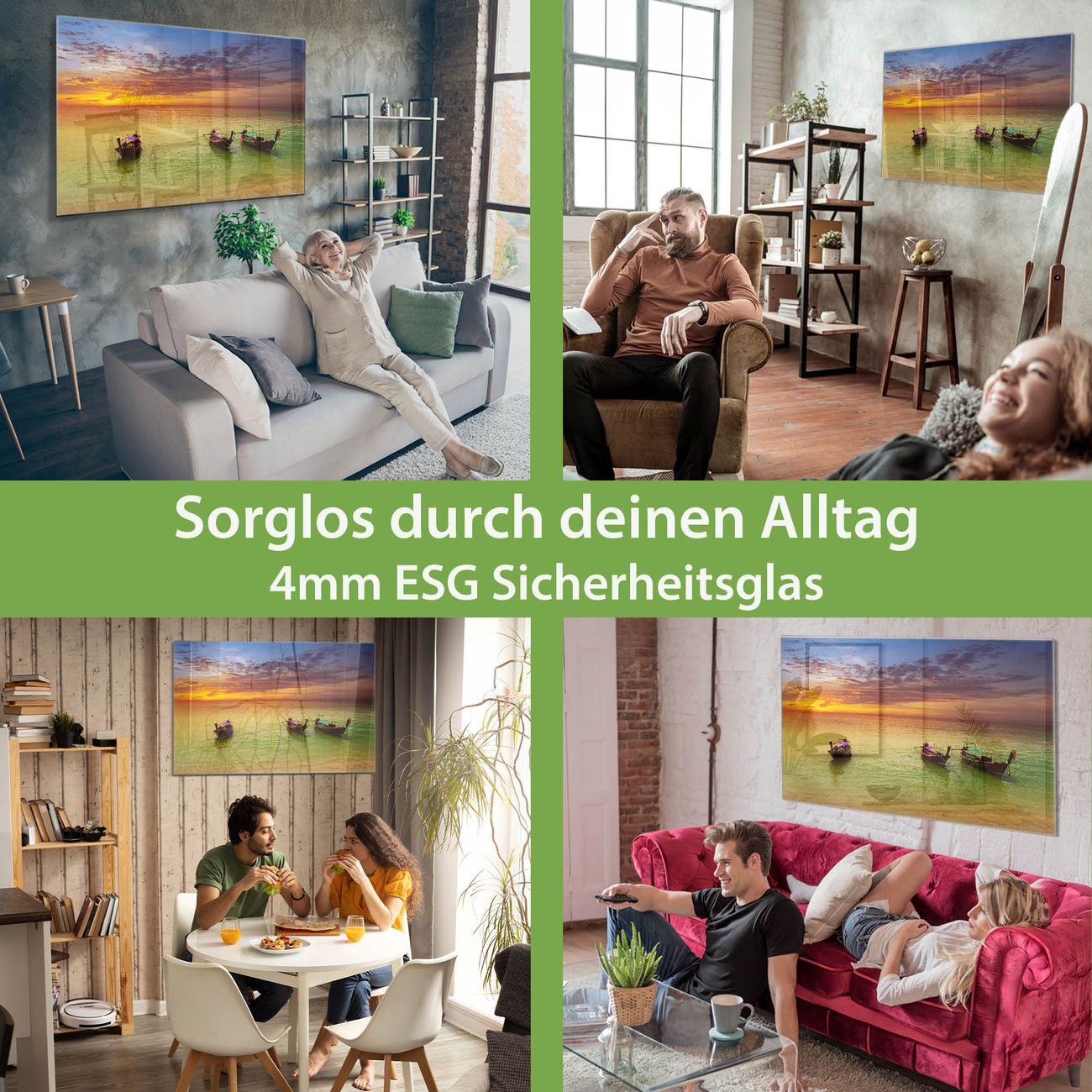 Material: 4mm Sicherheitsglas mit Metallrückwand Eigenschaften: beschreibbar, magnetisch, kratzfest Maße: 45x30x0,6cm, 2,03kg schwer Motiv Nummer 12413 Golf Von Thailand Zubehör: inklusive 4 Neodym-Magnete