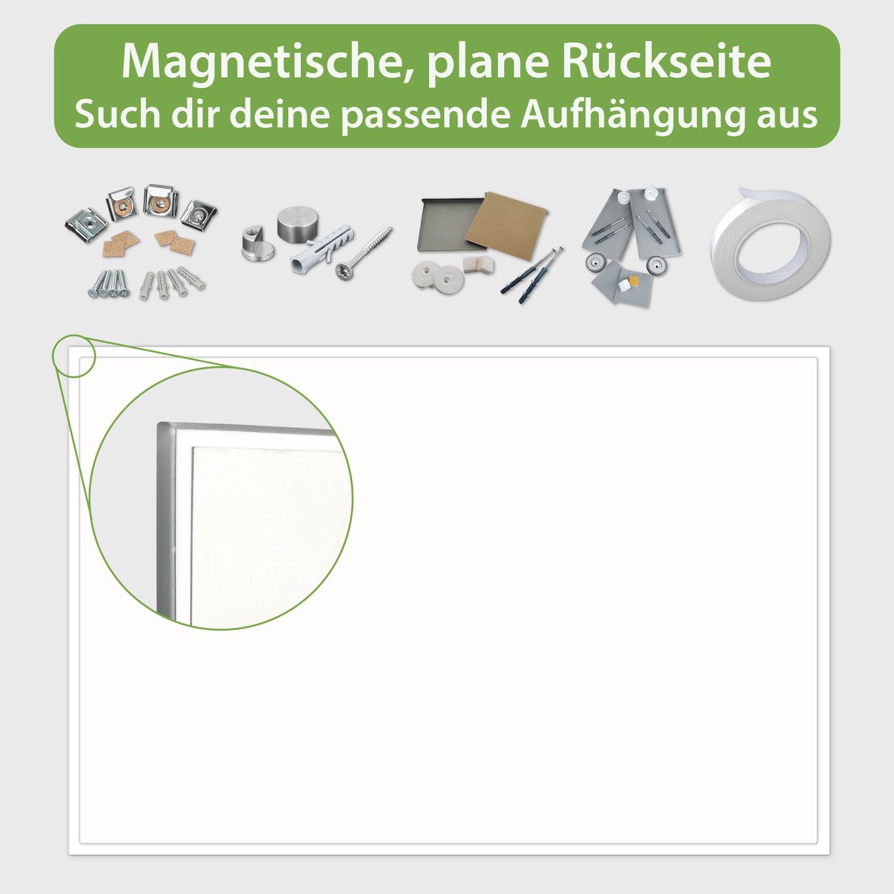 Gefertigt aus gehärtetem Sicherheitsglas mit einer magnetischen Rückwand aus Stahl überzeugt diese Magnettafel durch Stabilität und Langlebigkeit. Die Oberfläche bleibt dauerhaft brillant und pflegeleicht, selbst bei täglicher Nutzung.