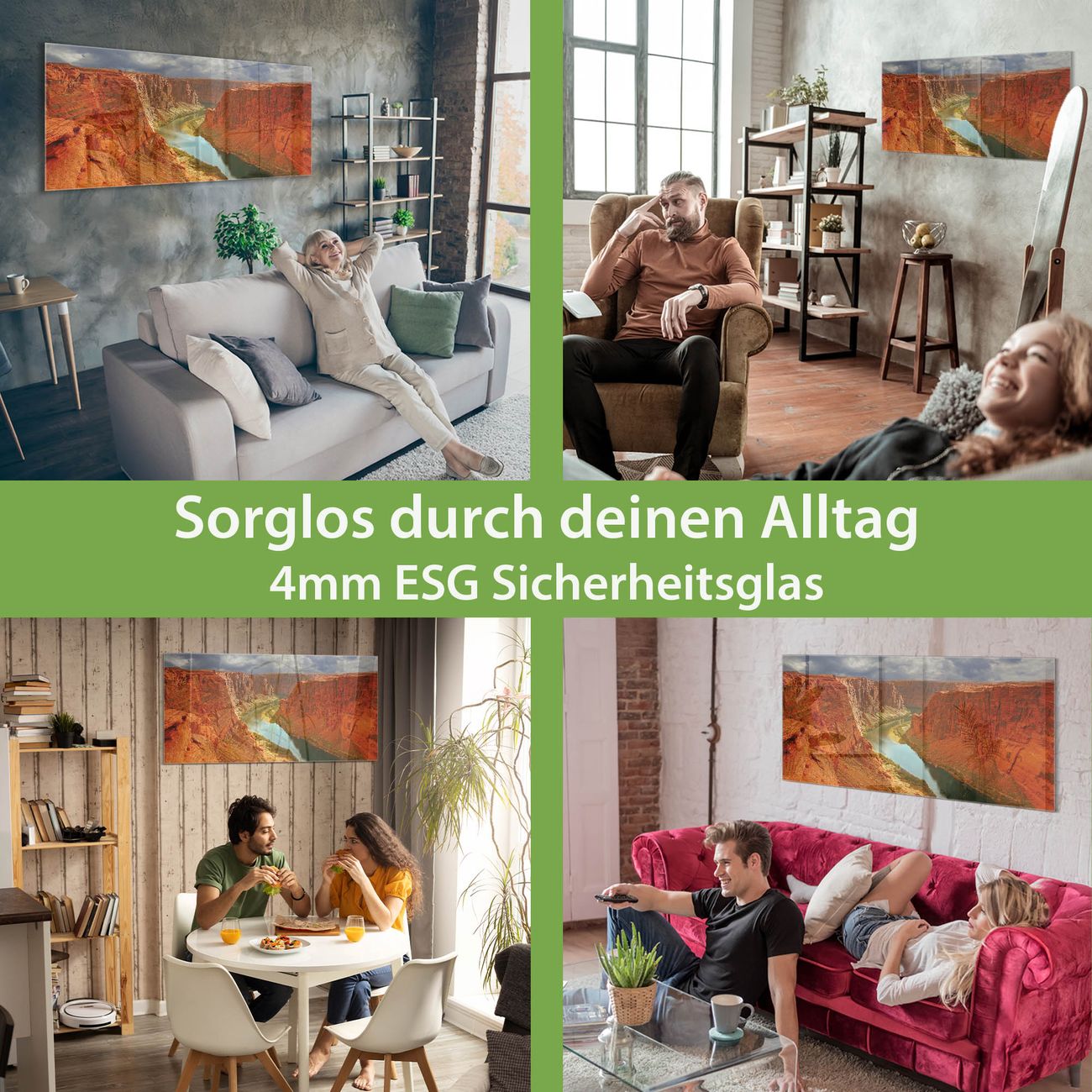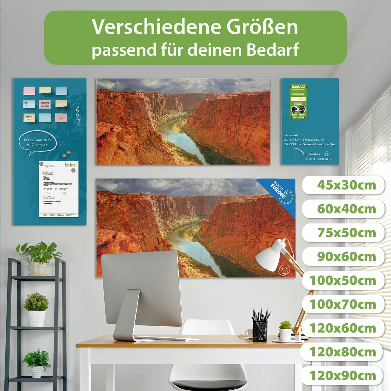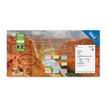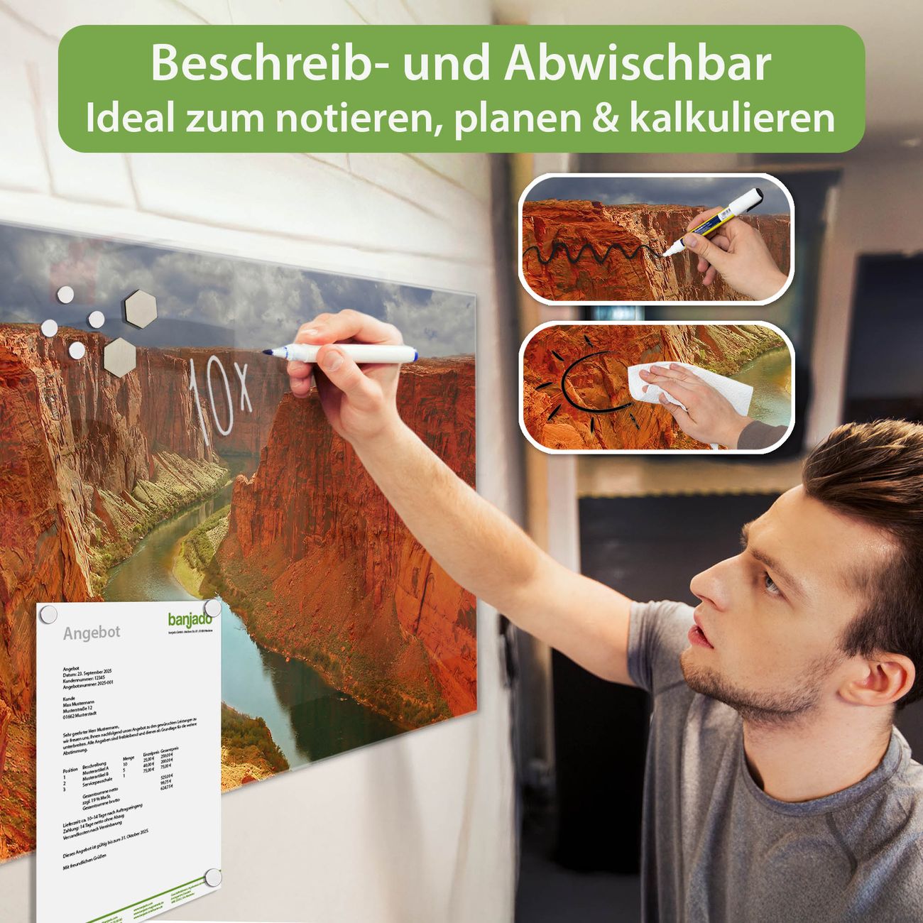 Material: 4mm Sicherheitsglas mit Metallrückwand Eigenschaften: beschreibbar, magnetisch, kratzfest Maße: 120x60x0,6cm, 10,80kg schwer Motiv Nummer 10091 Grand Canyon Zubehör: inklusive 4 Neodym-Magnete