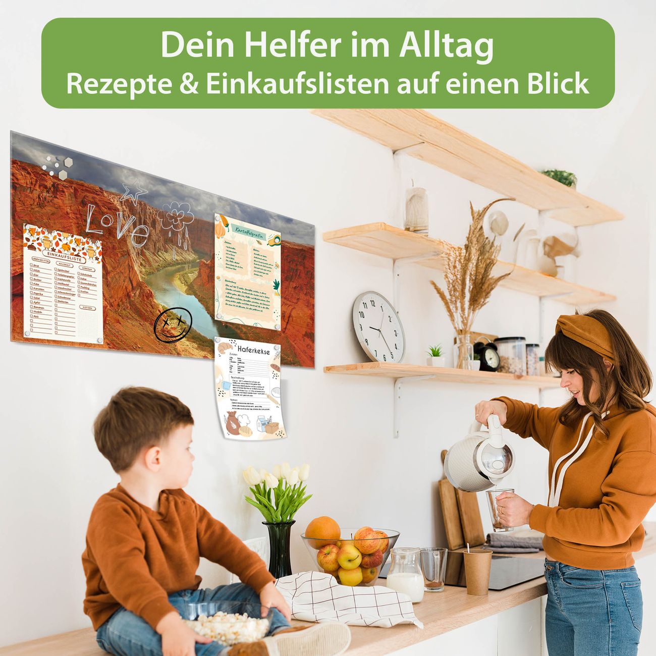 Ein Stück Design, das Ihren Alltag organisiert. Schreiben, heften, inspirieren - alles an einem Ort. Qualität, die man spürt. Montage leicht gemacht. Handwerk mit Herz - veredelt in Sachsen. Einzigartiges Design mit Motiv Motiv Grand Canyon Beschreibbare Glasoberfläche, leicht zu reinigen Starke Magnetkraft durch Stahlrückwand Inklusive 4 Neodym-Magneten Flexible Montageoptionen Handveredelt in Sachsen - Qualität, die bleibt