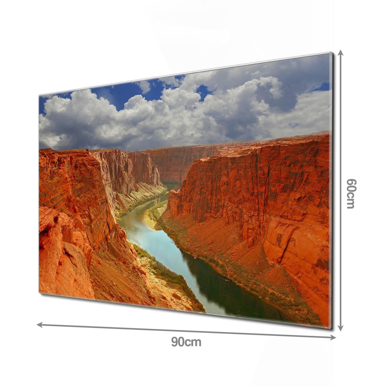 Material: 4mm Sicherheitsglas mit Metallrückwand Eigenschaften: beschreibbar, magnetisch, kratzfest Maße: 90x60x0,6cm, 8,10kg schwer Motiv Nummer 10091 Grand Canyon Zubehör: inklusive 4 Neodym-Magnete