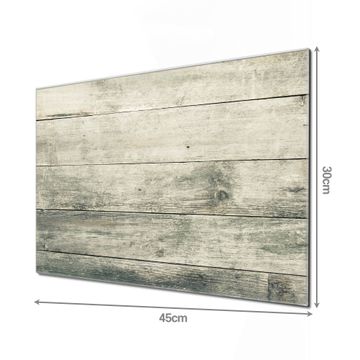 Material: 4mm Sicherheitsglas mit Metallrückwand Eigenschaften: beschreibbar, magnetisch, kratzfest Maße: 45x30x0,6cm, 2,03kg schwer Motiv Nummer 11468 Graue Planken Zubehör: inklusive 4 Neodym-Magnete