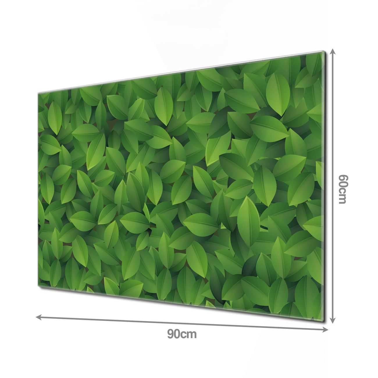 Material  4mm Sicherheitsglas mit Metallrückwand Eigenschaften  beschreibbar, magnetisch, kratzfest Maße  90x60x0,6cm, 8,10kg schwer Motiv  Nummer 10910 Grüne Blätter Zubehör  inklusive 4 Neodym-Magnete