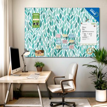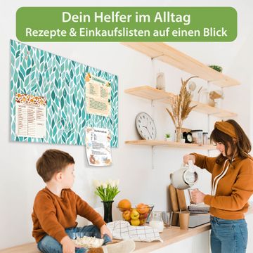 Glas Magnettafel im Querformat Motiv Blätter Mint