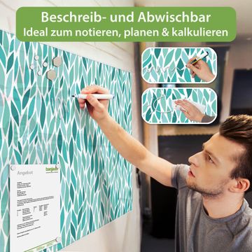 Die banjado Glas Magnettafel mit dem Motiv Motiv Blätter Mint verbindet Funktionalität mit Stil. Sie ersetzt das Zettelchaos durch klare Strukturen und bringt dabei eine warme, natürliche Atmosphäre in Ihr Zuhause. Ob im Büro, in der Küche oder im Eingangsbereich - dieses Design-Board zieht Blicke an und sorgt für Ordnung mit Charakter.