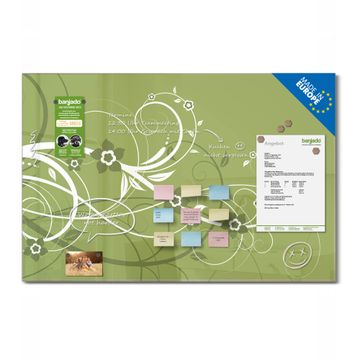 Material: 4mm Sicherheitsglas mit Metallrückwand Eigenschaften: beschreibbar, magnetisch, kratzfest Maße: 120x80x0,6cm, 14,40kg schwer Motiv Nummer 10333 Grüne Blüten Zubehör: inklusive 4 Neodym-Magnete