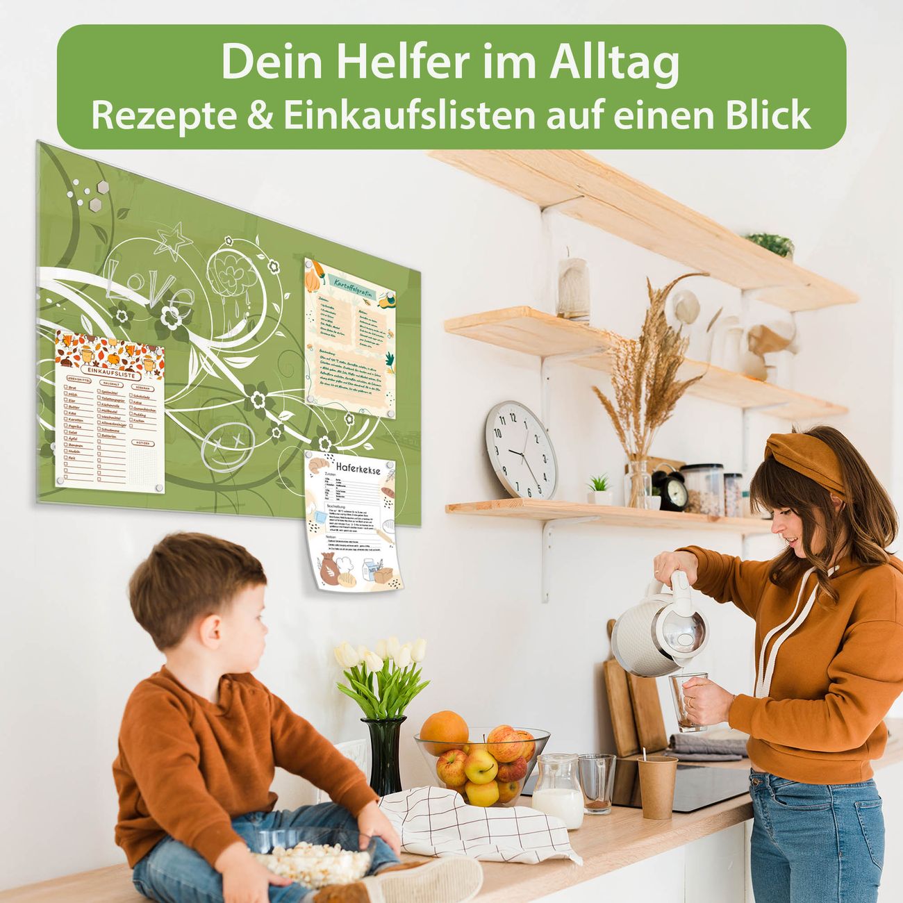 Auf der glatten Glasoberfläche lassen sich Termine, Rezepte oder Notizen ganz einfach mit Kreidestiften festhalten und rückstandslos entfernen. Starke Neodym-Magnete halten Ihre wichtigsten Erinnerungen sicher an Ort und Stelle. So entsteht Ihre ganz persönliche Ideenwand - jeden Tag neu.