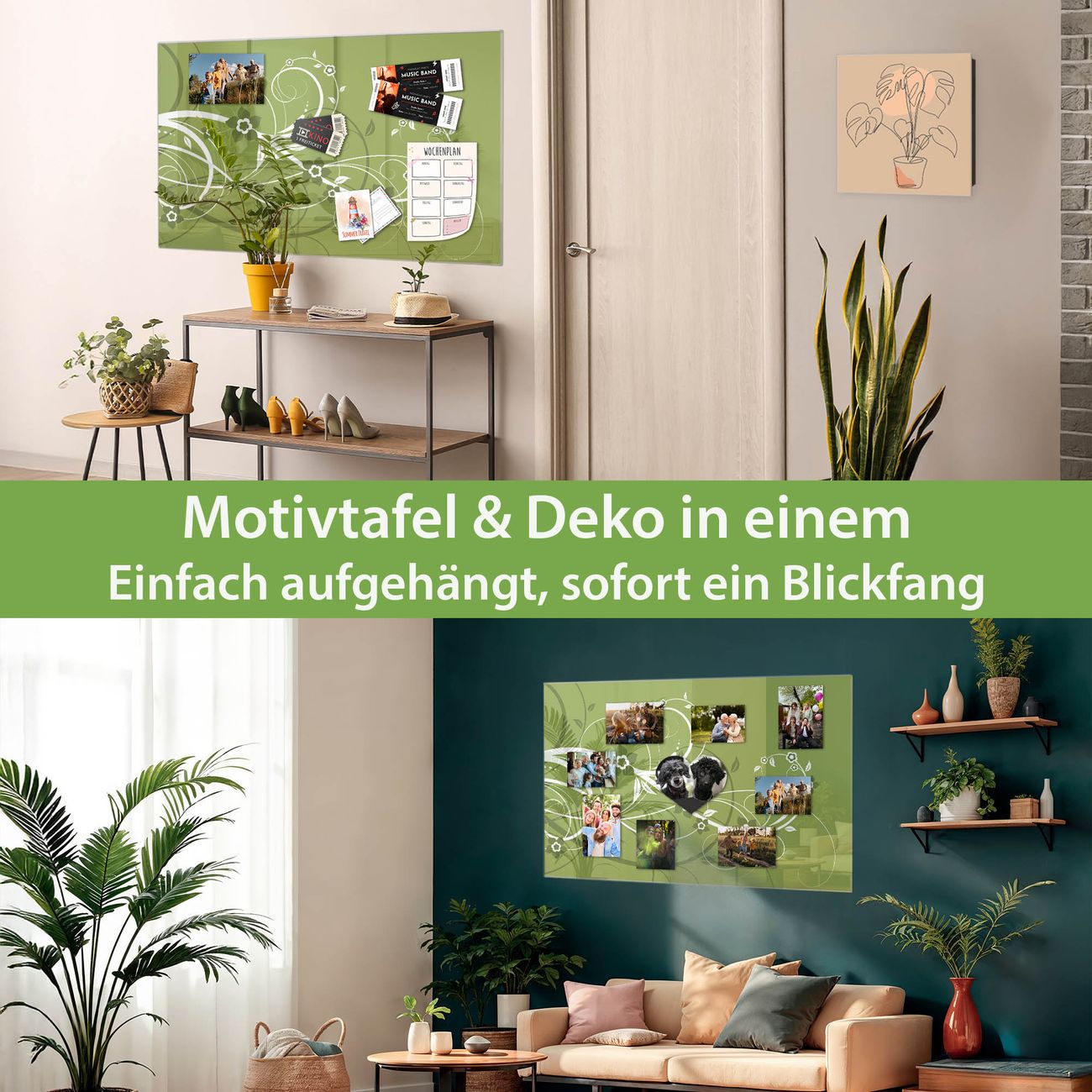 Die banjado Glas Magnettafel mit dem Motiv Motiv Grüne Blüten verbindet Funktionalität mit Stil. Sie ersetzt das Zettelchaos durch klare Strukturen und bringt dabei eine warme, natürliche Atmosphäre in Ihr Zuhause. Ob im Büro, in der Küche oder im Eingangsbereich - dieses Design-Board zieht Blicke an und sorgt für Ordnung mit Charakter.