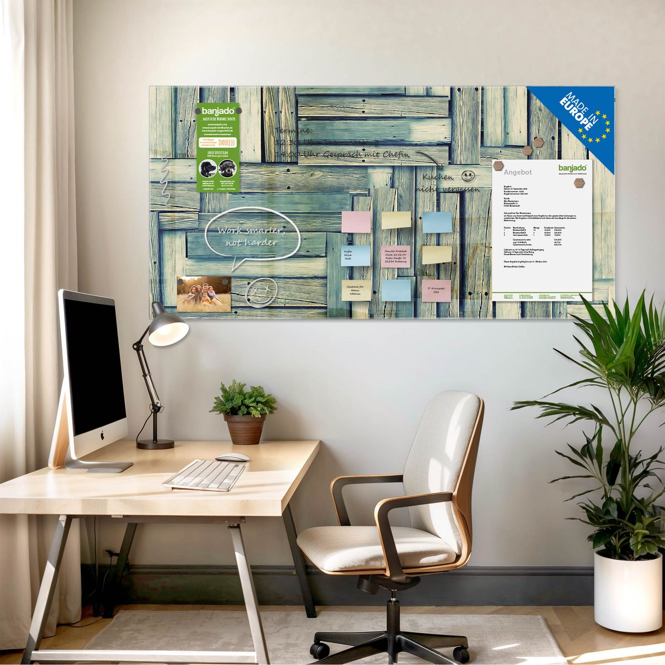Die banjado Glas Magnettafel mit dem Motiv Motiv Grüne Planken verbindet Funktionalität mit Stil. Sie ersetzt das Zettelchaos durch klare Strukturen und bringt dabei eine warme, natürliche Atmosphäre in Ihr Zuhause. Ob im Büro, in der Küche oder im Eingangsbereich - dieses Design-Board zieht Blicke an und sorgt für Ordnung mit Charakter.