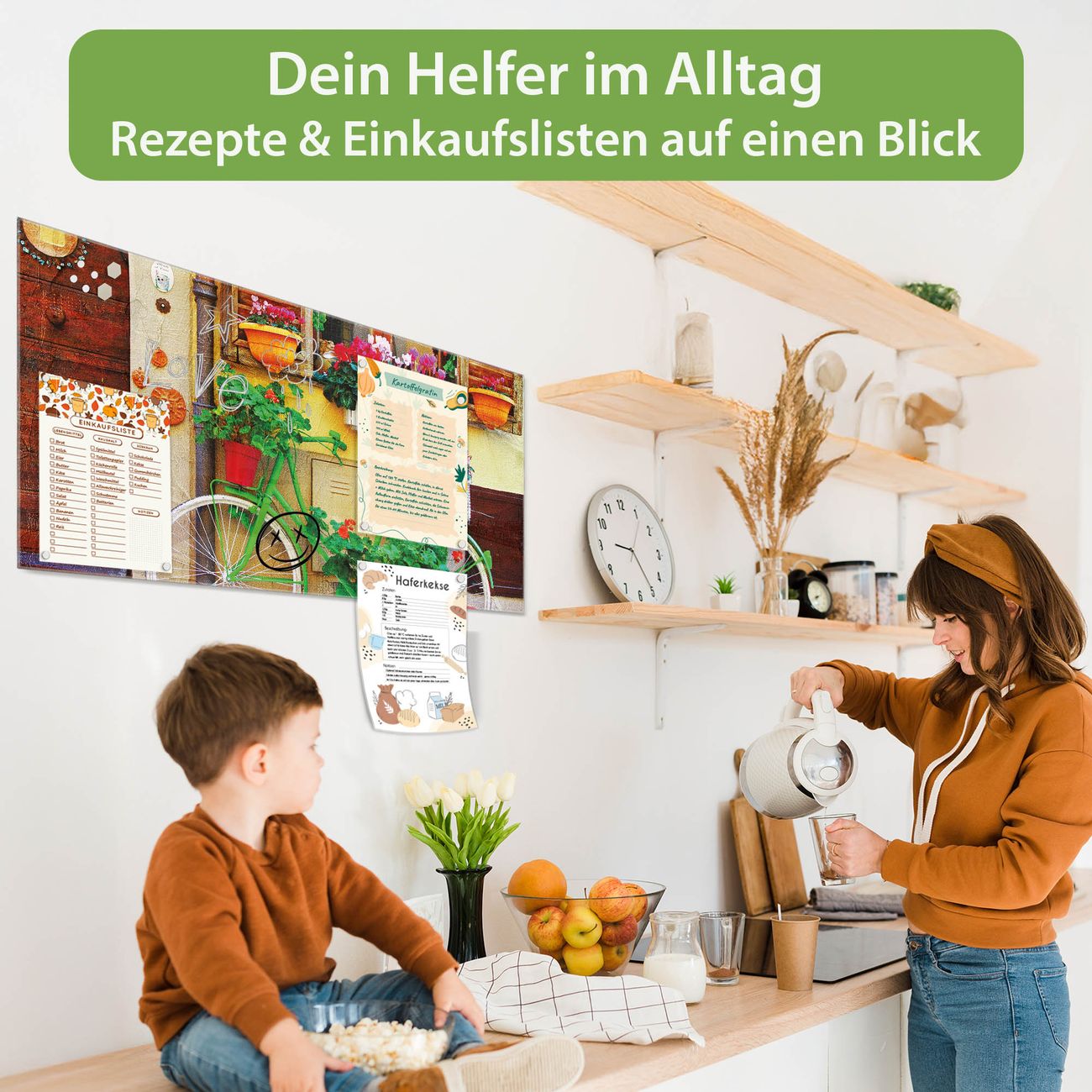 Ein Stück Design, das Ihren Alltag organisiert. Schreiben, heften, inspirieren - alles an einem Ort. Qualität, die man spürt. Montage leicht gemacht. Handwerk mit Herz - veredelt in Sachsen. Einzigartiges Design mit Motiv Motiv Grünes Fahrrad Beschreibbare Glasoberfläche, leicht zu reinigen Starke Magnetkraft durch Stahlrückwand Inklusive 4 Neodym-Magneten Flexible Montageoptionen Handveredelt in Sachsen - Qualität, die bleibt