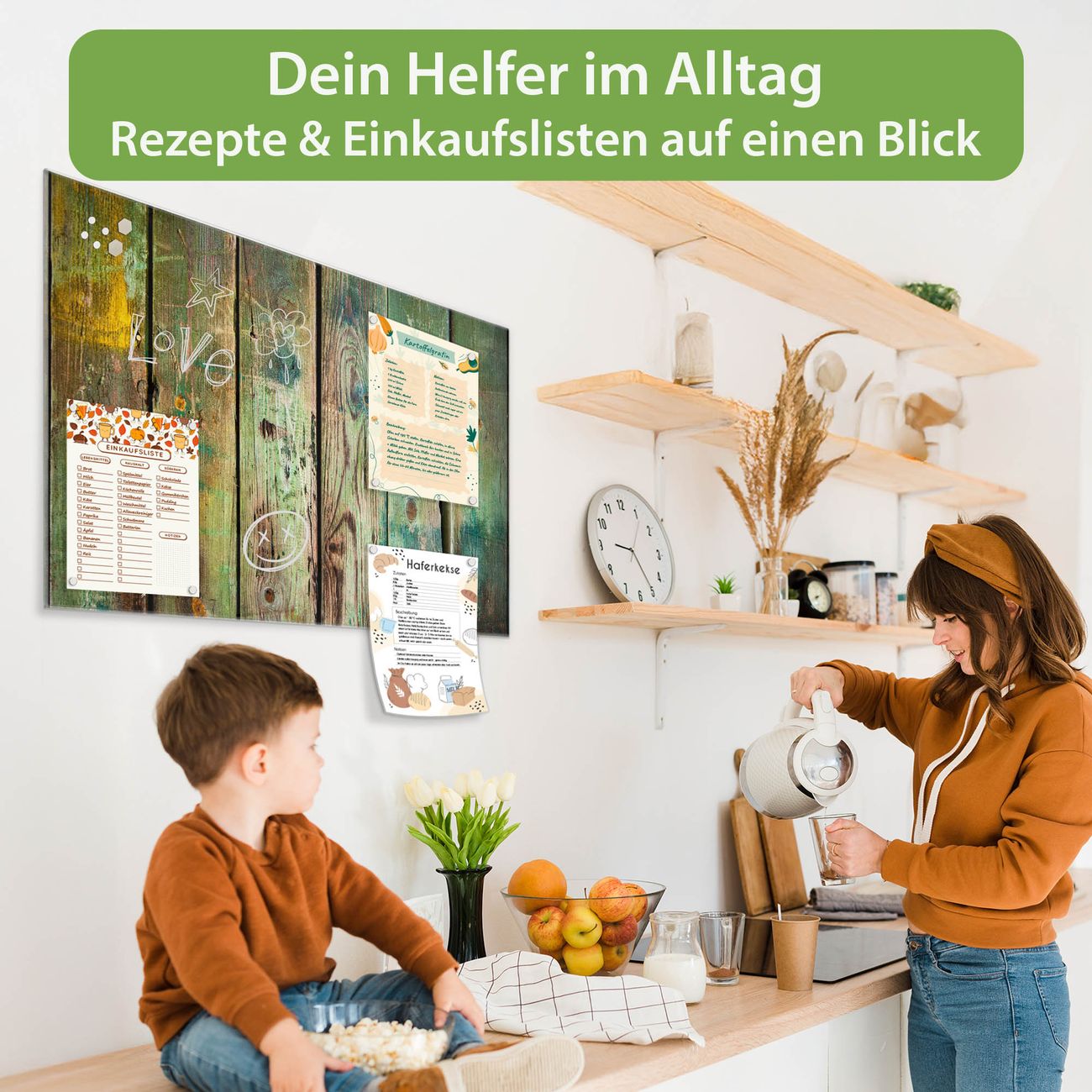 Auf der glatten Glasoberfläche lassen sich Termine, Rezepte oder Notizen ganz einfach mit Kreidestiften festhalten und rückstandslos entfernen. Starke Neodym-Magnete halten Ihre wichtigsten Erinnerungen sicher an Ort und Stelle. So entsteht Ihre ganz persönliche Ideenwand - jeden Tag neu.