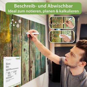 Die banjado Glas Magnettafel mit dem Motiv Motiv Grünes Holz verbindet Funktionalität mit Stil. Sie ersetzt das Zettelchaos durch klare Strukturen und bringt dabei eine warme, natürliche Atmosphäre in Ihr Zuhause. Ob im Büro, in der Küche oder im Eingangsbereich - dieses Design-Board zieht Blicke an und sorgt für Ordnung mit Charakter.
