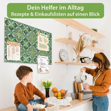 Die banjado Glas Magnettafel mit dem Motiv Motiv Grünes Muster verbindet Funktionalität mit Stil. Sie ersetzt das Zettelchaos durch klare Strukturen und bringt dabei eine warme, natürliche Atmosphäre in Ihr Zuhause. Ob im Büro, in der Küche oder im Eingangsbereich - dieses Design-Board zieht Blicke an und sorgt für Ordnung mit Charakter.
