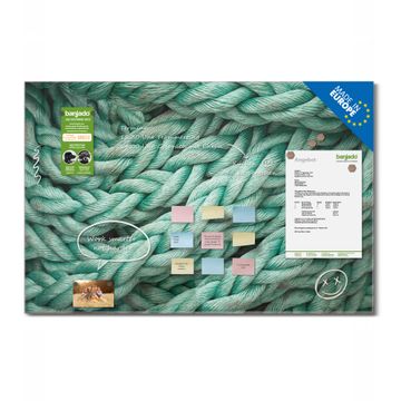 Material: 4mm Sicherheitsglas mit Metallrückwand Eigenschaften: beschreibbar, magnetisch, kratzfest Maße: 120x80x0,6cm, 14,40kg schwer Motiv Nummer 11945 Grünes Tau Zubehör: inklusive 4 Neodym-Magnete