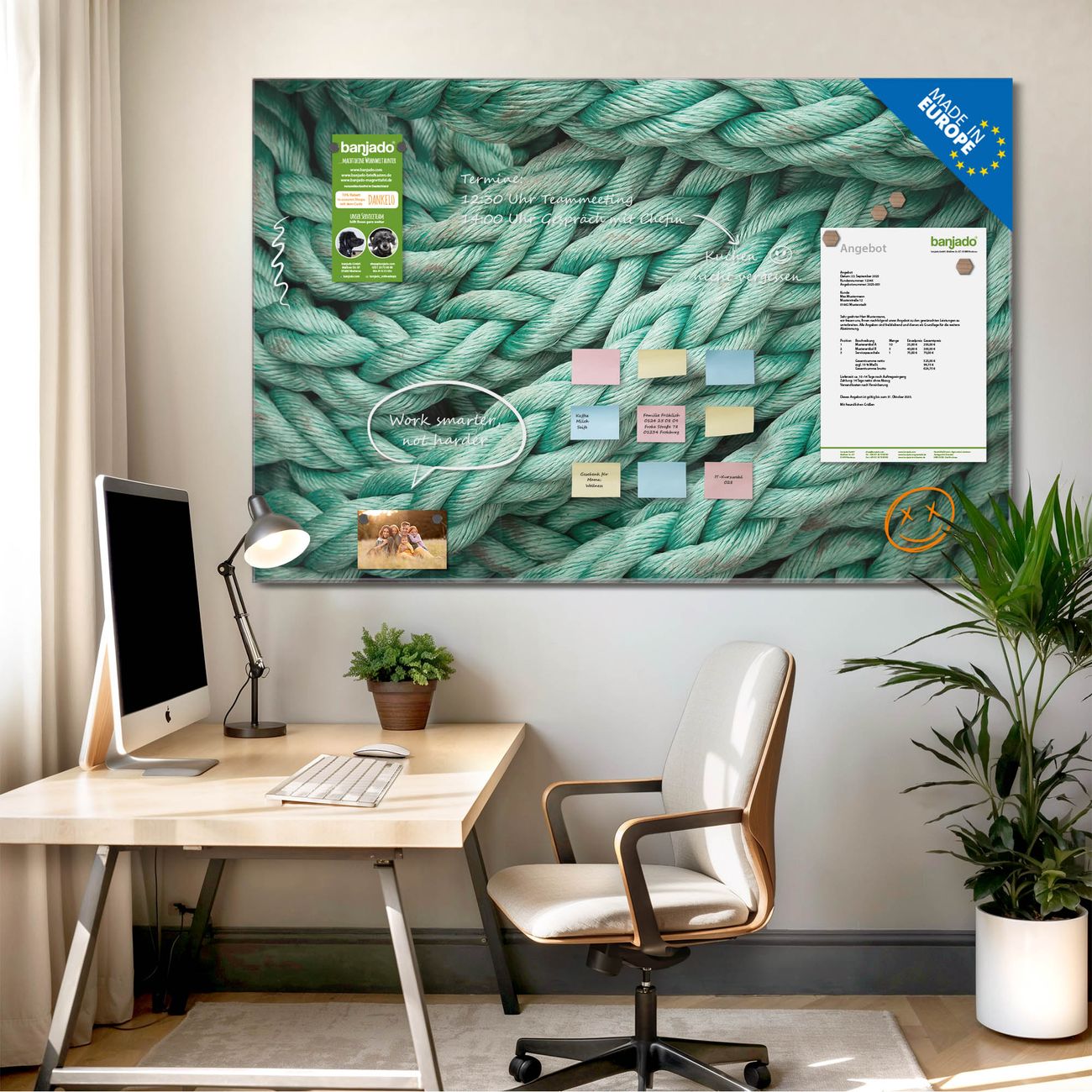 Die banjado Glas Magnettafel mit dem Motiv Motiv Grünes Tau verbindet Funktionalität mit Stil. Sie ersetzt das Zettelchaos durch klare Strukturen und bringt dabei eine warme, natürliche Atmosphäre in Ihr Zuhause. Ob im Büro, in der Küche oder im Eingangsbereich - dieses Design-Board zieht Blicke an und sorgt für Ordnung mit Charakter.