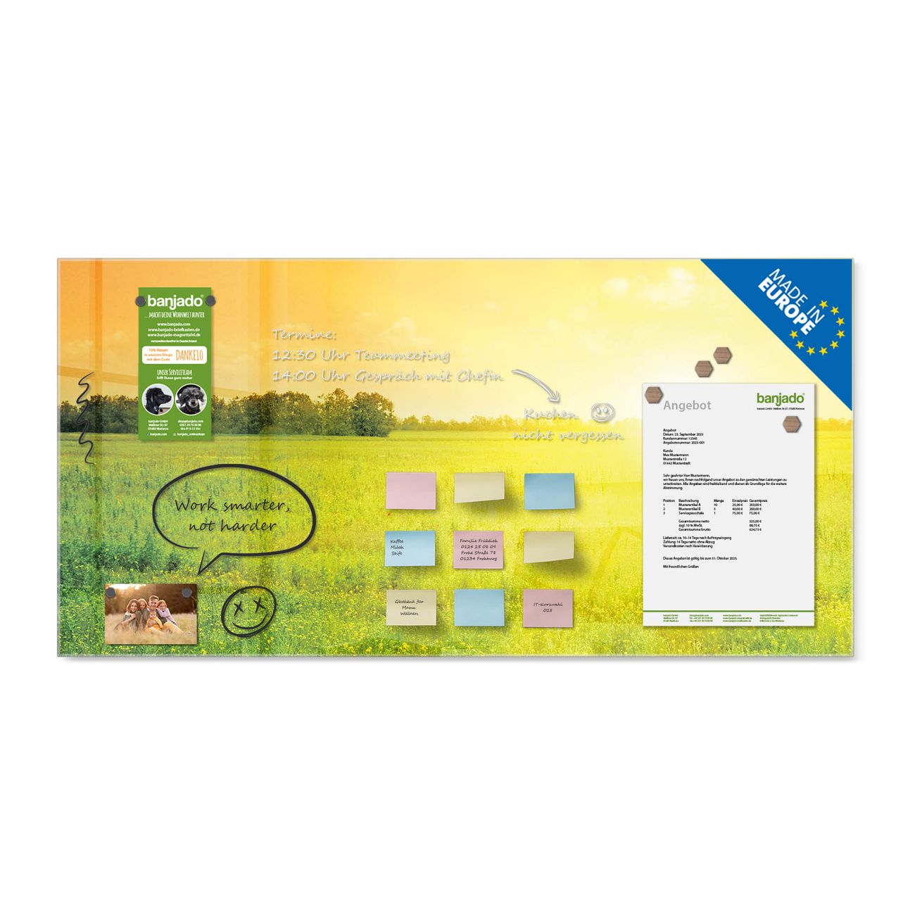 Jede Glas Magnettafel wird in unserer Werkstatt von Hand gefertigt und sorgfältig geprüft. So erhalten Sie ein echtes Qualitätsprodukt, das Funktion und Ästhetik perfekt vereint.?? Warum banjado?