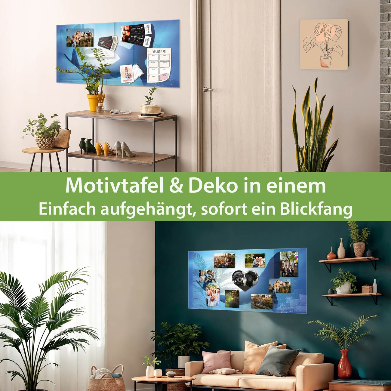 Dank der flachen Bauweise wirkt die Magnetwand fast schwebend an der Wand. Sie können sie mit Montagekleber elegant befestigen oder mit einem passenden Set klassisch verschrauben - beides sorgt für sicheren Halt und eine dezente Optik.