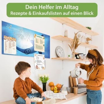 Auf der glatten Glasoberfläche lassen sich Termine, Rezepte oder Notizen ganz einfach mit Kreidestiften festhalten und rückstandslos entfernen. Starke Neodym-Magnete halten Ihre wichtigsten Erinnerungen sicher an Ort und Stelle. So entsteht Ihre ganz persönliche Ideenwand - jeden Tag neu.