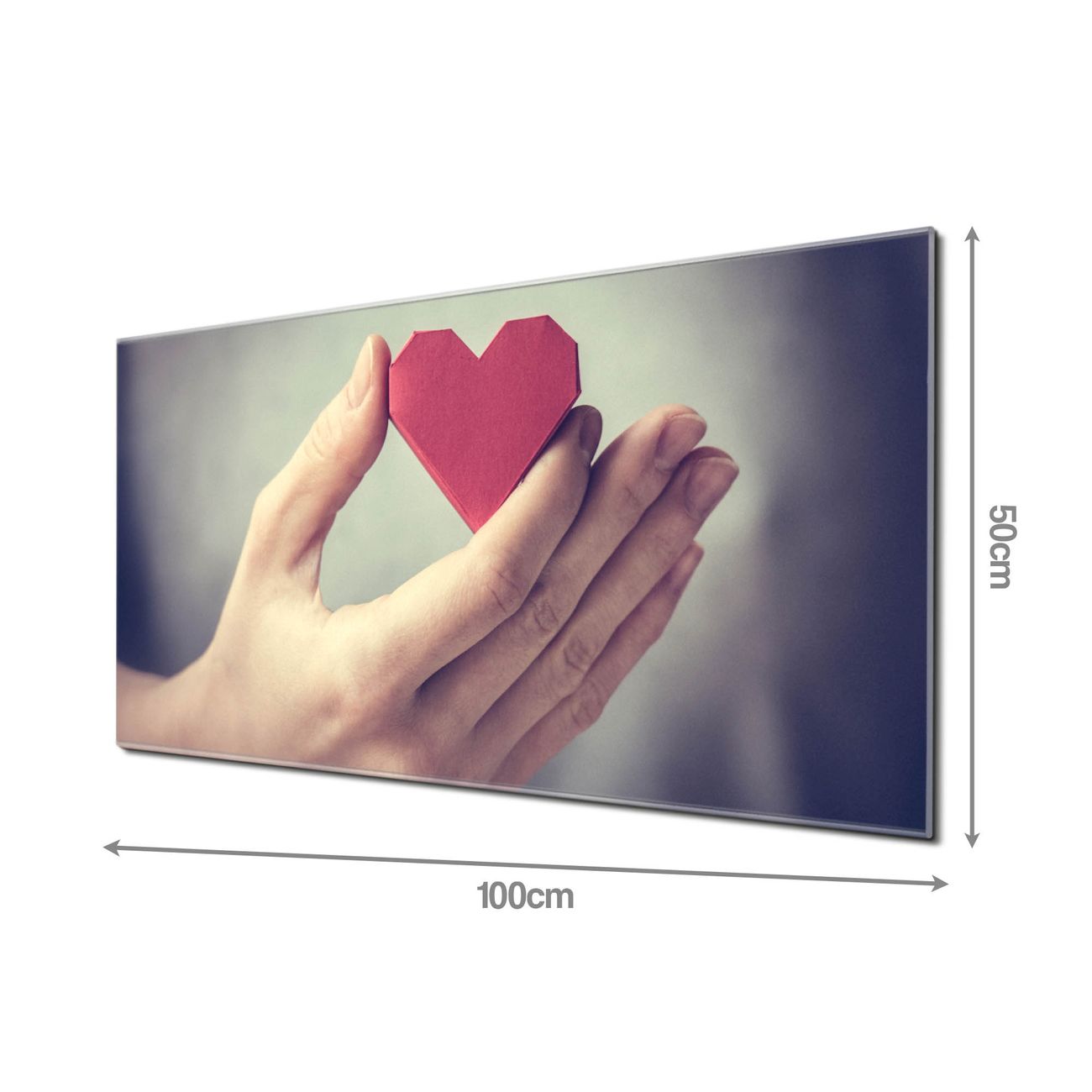 Material: 4mm Sicherheitsglas mit Metallrückwand Eigenschaften: beschreibbar, magnetisch, kratzfest Maße: 100x50x0,6cm, 7,50kg schwer Motiv Nummer 12520 Hand Aufs Herz Zubehör: inklusive 4 Neodym-Magnete