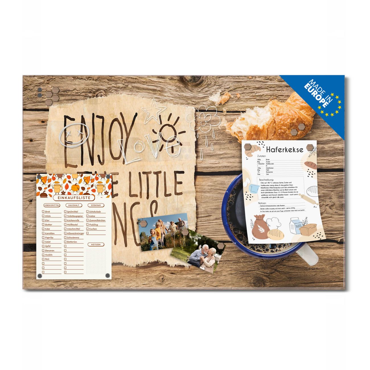 Die banjado Glas Magnettafel mit dem Motiv Motiv Happy Day verbindet Funktionalität mit Stil. Sie ersetzt das Zettelchaos durch klare Strukturen und bringt dabei eine warme, natürliche Atmosphäre in Ihr Zuhause. Ob im Büro, in der Küche oder im Eingangsbereich - dieses Design-Board zieht Blicke an und sorgt für Ordnung mit Charakter.