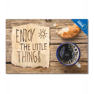 Material: 4mm Sicherheitsglas mit Metallrückwand Eigenschaften: beschreibbar, magnetisch, kratzfest Maße: 75x50x0,6cm, 5,63kg schwer Motiv Nummer 12497 Happy Day Zubehör: inklusive 4 Neodym-Magnete