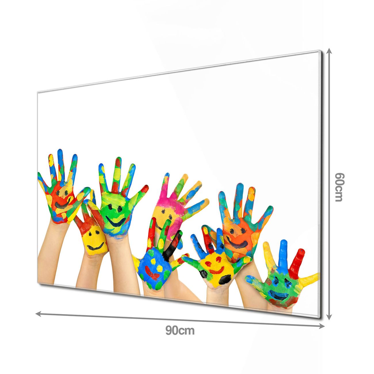 Material  4mm Sicherheitsglas mit Metallrückwand Eigenschaften  beschreibbar, magnetisch, kratzfest Maße  90x60x0,6cm, 8,10kg schwer Motiv  Nummer 10310 Happy Hands Zubehör  inklusive 4 Neodym-Magnete