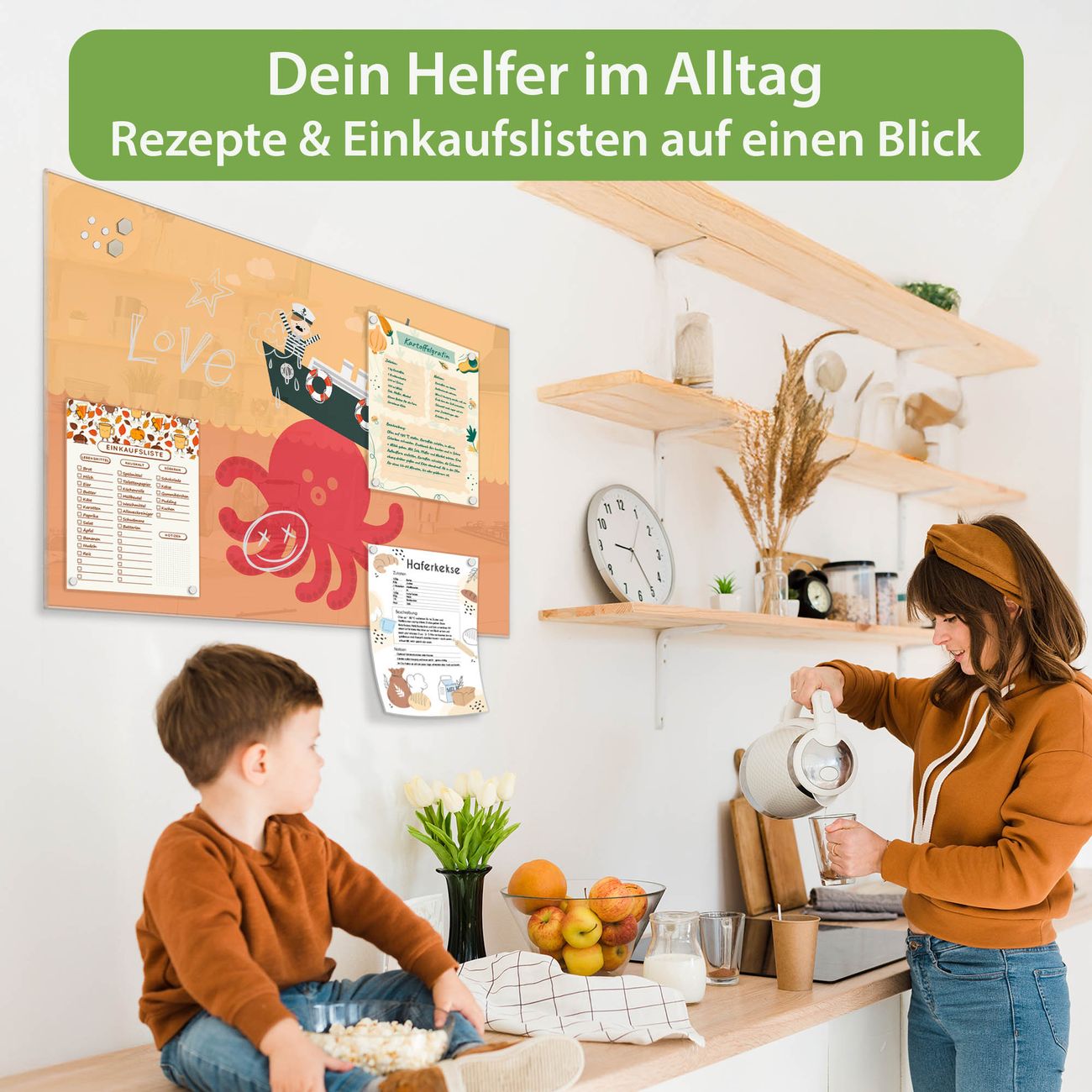 Die banjado Glas Magnettafel mit dem Motiv Motiv Havarie verbindet Funktionalität mit Stil. Sie ersetzt das Zettelchaos durch klare Strukturen und bringt dabei eine warme, natürliche Atmosphäre in Ihr Zuhause. Ob im Büro, in der Küche oder im Eingangsbereich - dieses Design-Board zieht Blicke an und sorgt für Ordnung mit Charakter.