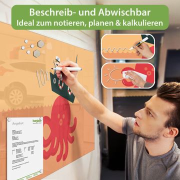 Auf der glatten Glasoberfläche lassen sich Termine, Rezepte oder Notizen ganz einfach mit Kreidestiften festhalten und rückstandslos entfernen. Starke Neodym-Magnete halten Ihre wichtigsten Erinnerungen sicher an Ort und Stelle. So entsteht Ihre ganz persönliche Ideenwand - jeden Tag neu.