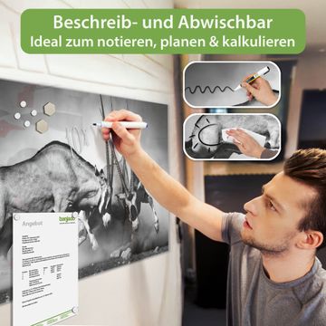 Dank der flachen Bauweise wirkt die Magnetwand fast schwebend an der Wand. Sie können sie mit Montagekleber elegant befestigen oder mit einem passenden Set klassisch verschrauben - beides sorgt für sicheren Halt und eine dezente Optik.