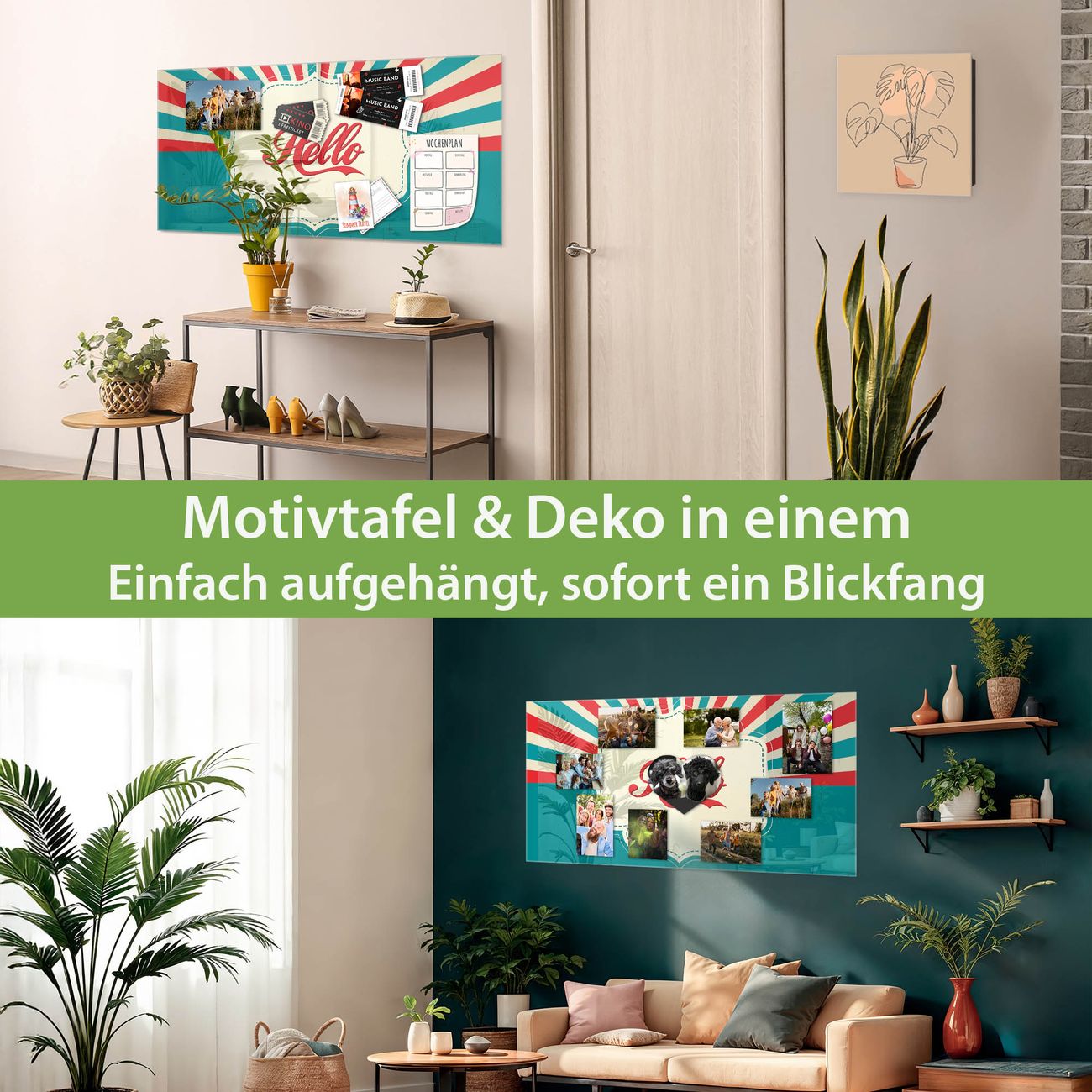 Die banjado Glas Magnettafel mit dem Motiv Motiv Hello verbindet Funktionalität mit Stil. Sie ersetzt das Zettelchaos durch klare Strukturen und bringt dabei eine warme, natürliche Atmosphäre in Ihr Zuhause. Ob im Büro, in der Küche oder im Eingangsbereich - dieses Design-Board zieht Blicke an und sorgt für Ordnung mit Charakter.