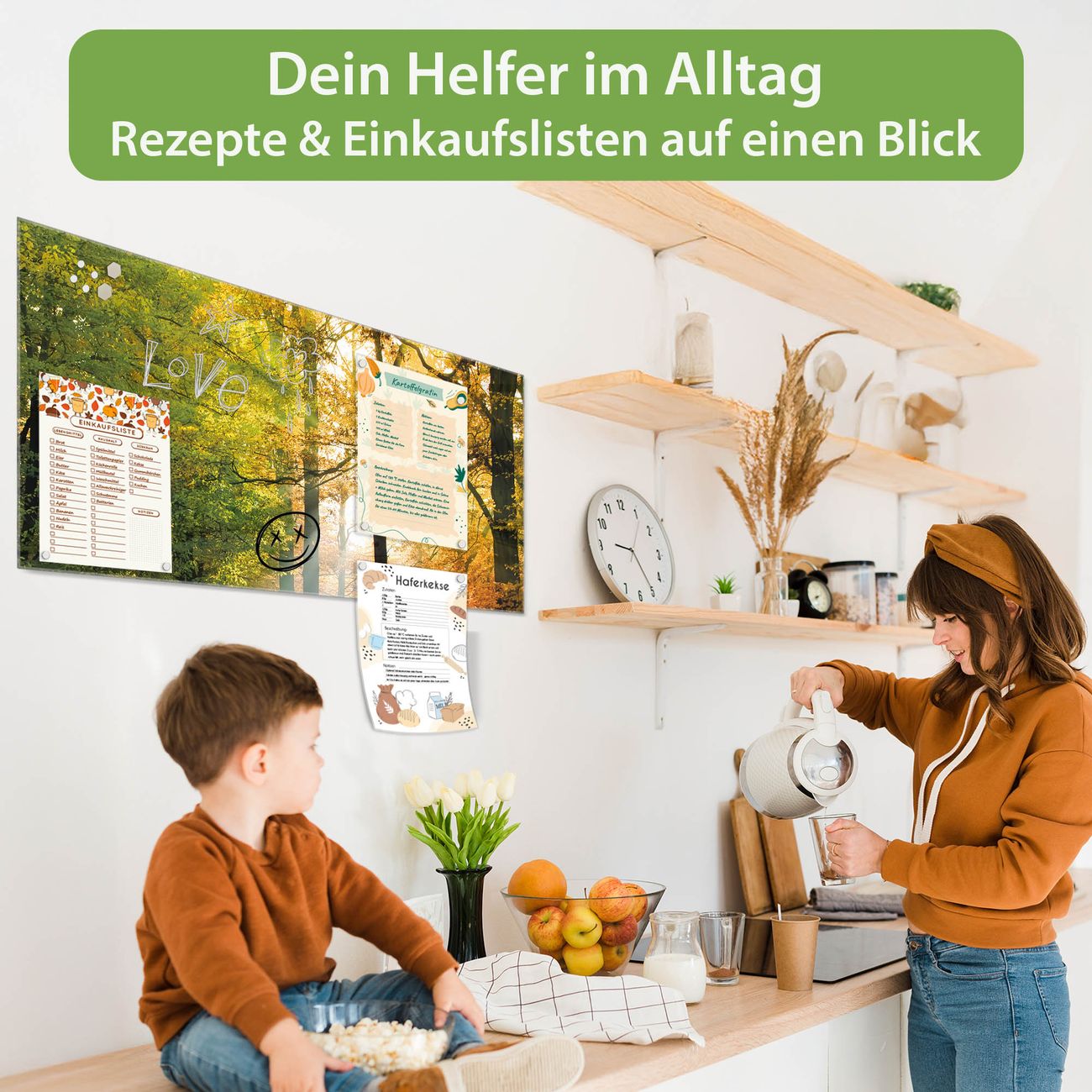 Ein Stück Design, das Ihren Alltag organisiert. Schreiben, heften, inspirieren - alles an einem Ort. Qualität, die man spürt. Montage leicht gemacht. Handwerk mit Herz - veredelt in Sachsen. Einzigartiges Design mit Motiv Motiv Herbstwald Beschreibbare Glasoberfläche, leicht zu reinigen Starke Magnetkraft durch Stahlrückwand Inklusive 4 Neodym-Magneten Flexible Montageoptionen Handveredelt in Sachsen - Qualität, die bleibt