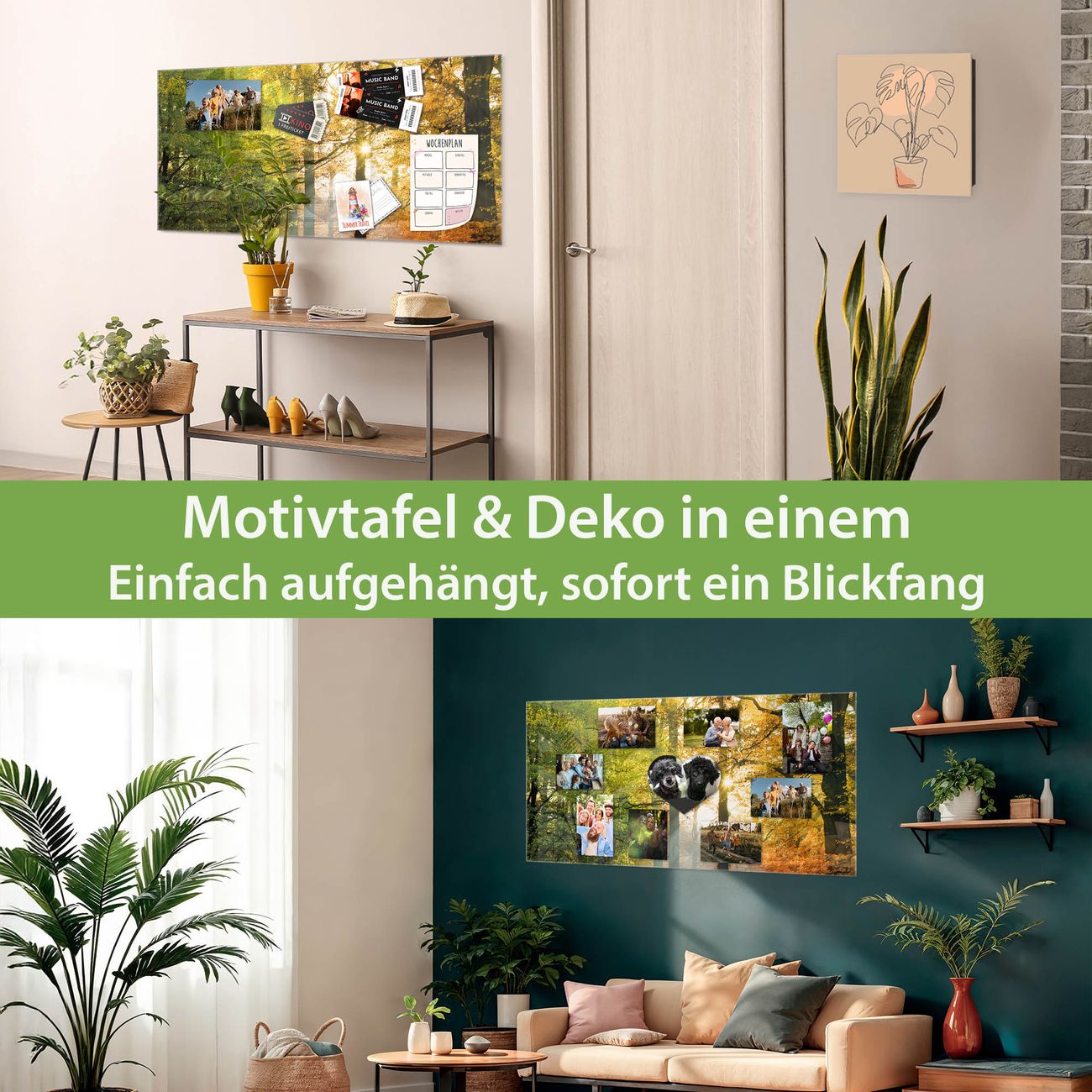 Die banjado Glas Magnettafel mit dem Motiv Motiv Herbstwald verbindet Funktionalität mit Stil. Sie ersetzt das Zettelchaos durch klare Strukturen und bringt dabei eine warme, natürliche Atmosphäre in Ihr Zuhause. Ob im Büro, in der Küche oder im Eingangsbereich - dieses Design-Board zieht Blicke an und sorgt für Ordnung mit Charakter.