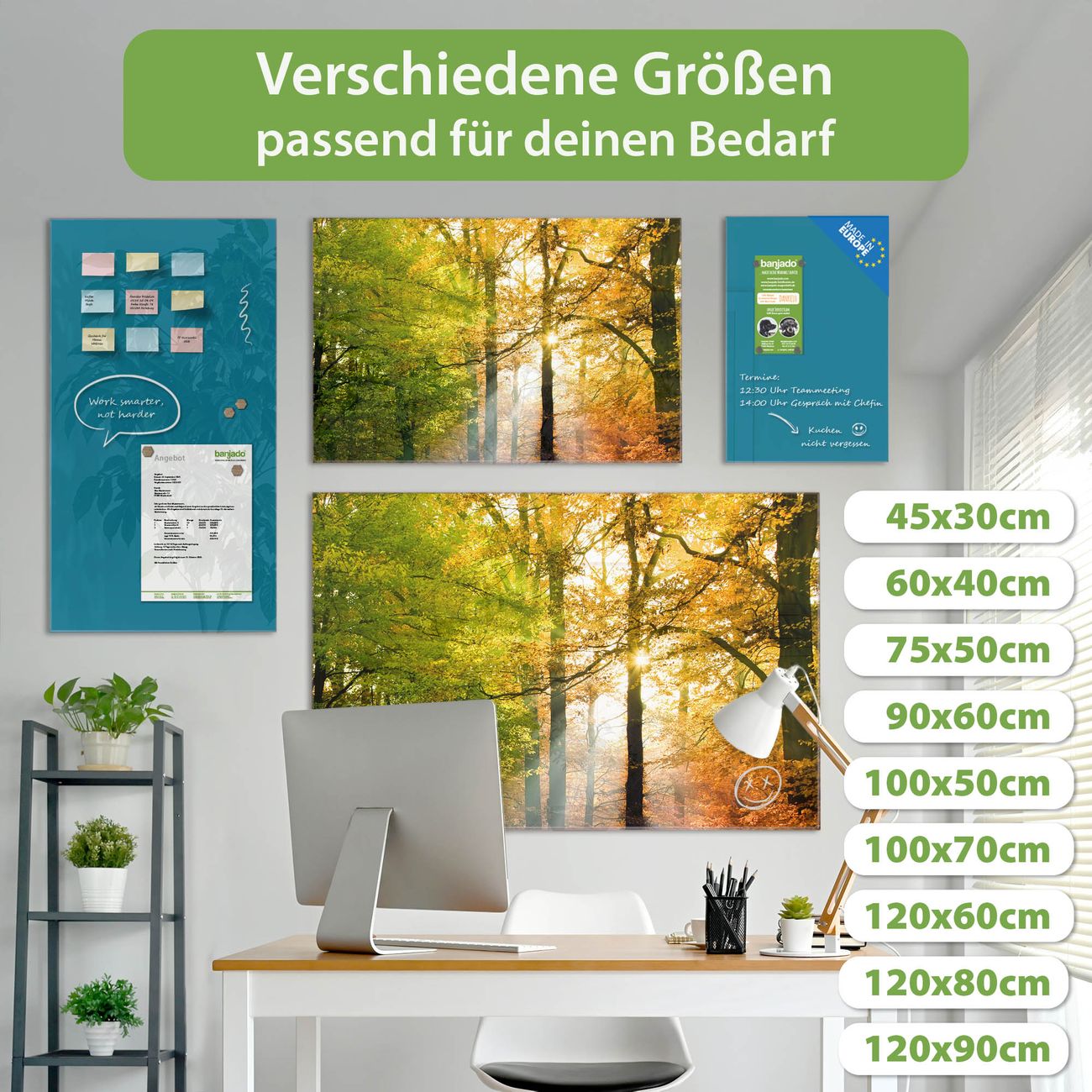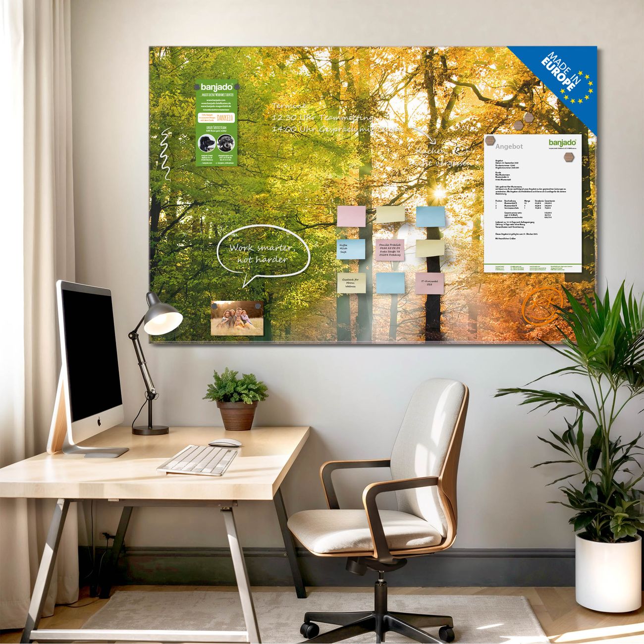 Jede Glas Magnettafel wird in unserer Werkstatt von Hand gefertigt und sorgfältig geprüft. So erhalten Sie ein echtes Qualitätsprodukt, das Funktion und Ästhetik perfekt vereint.?? Warum banjado?