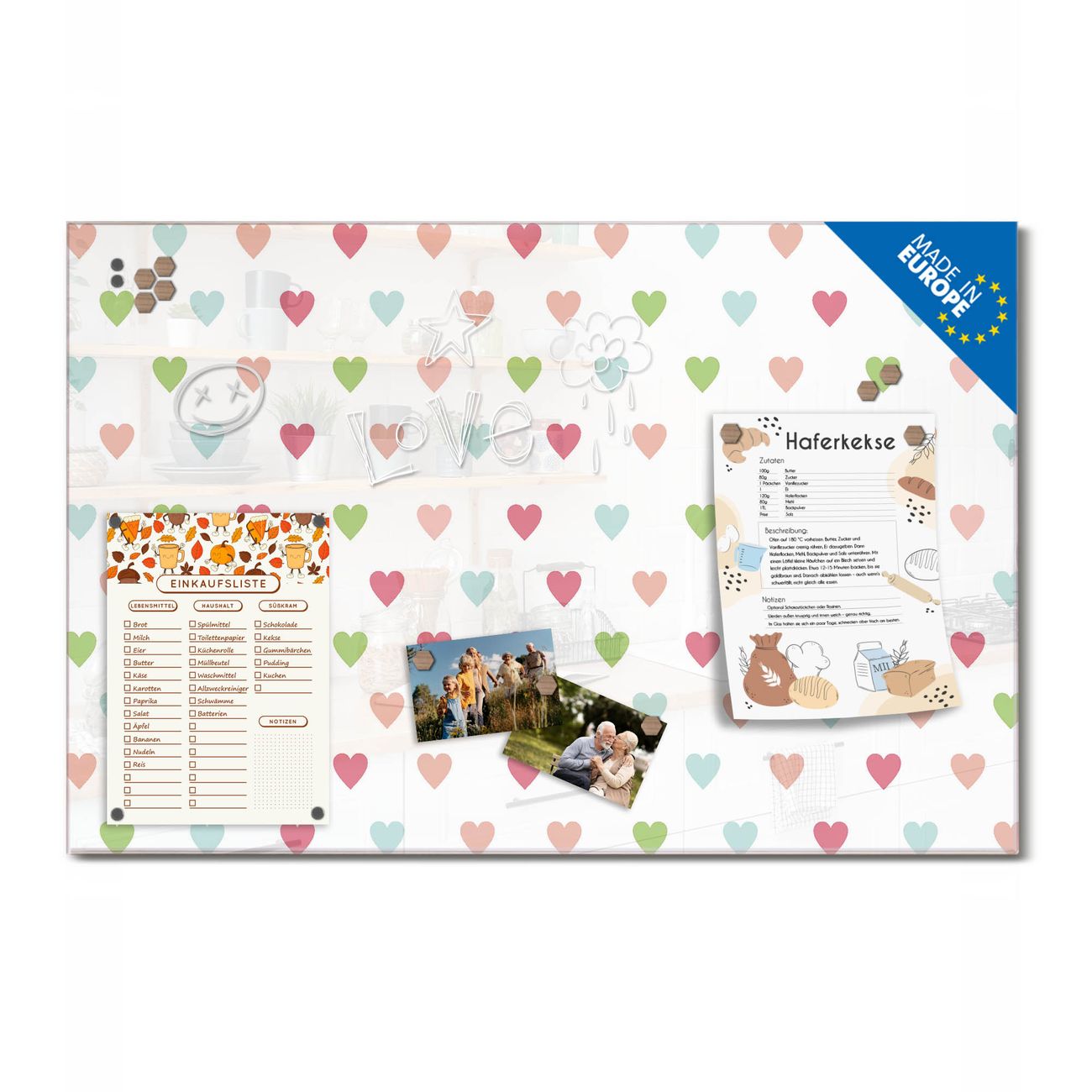 Glas Magnettafel im Querformat Motiv Herzen Auf Weiß